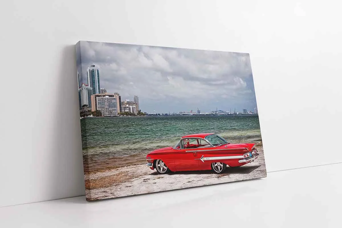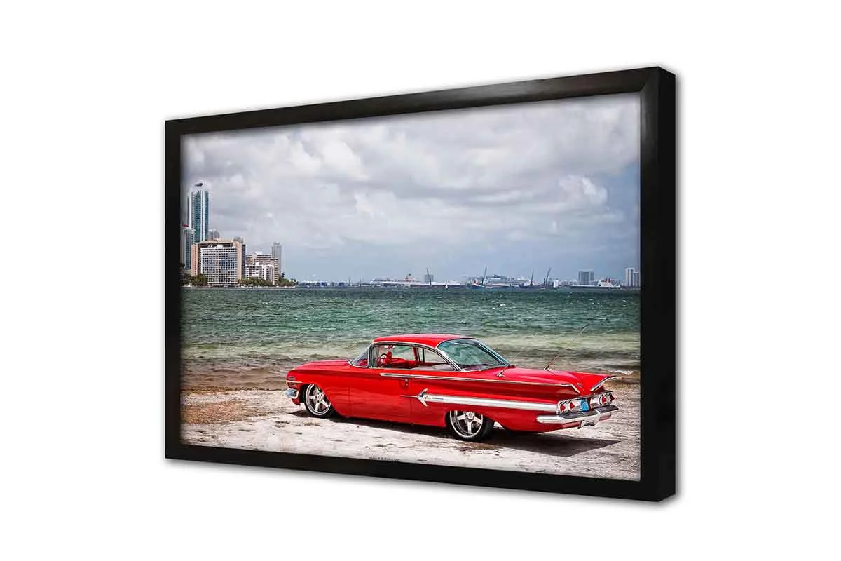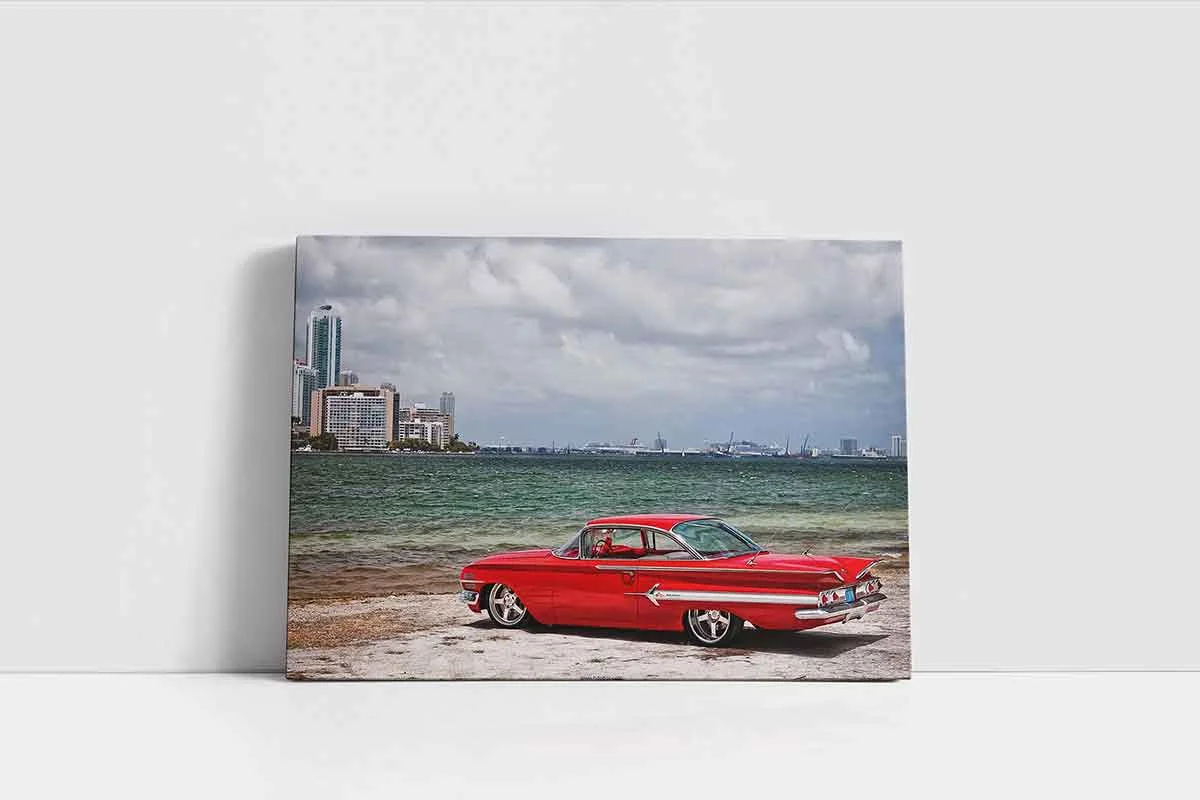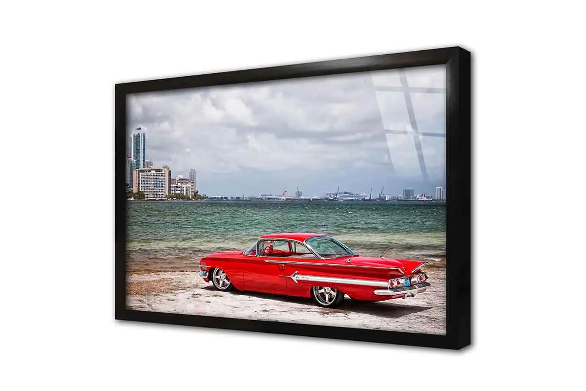 Deniz Kıyısında Klasik Araba | Kanvas Tablo | Cam Tablo | Mdf Tablo | A01147