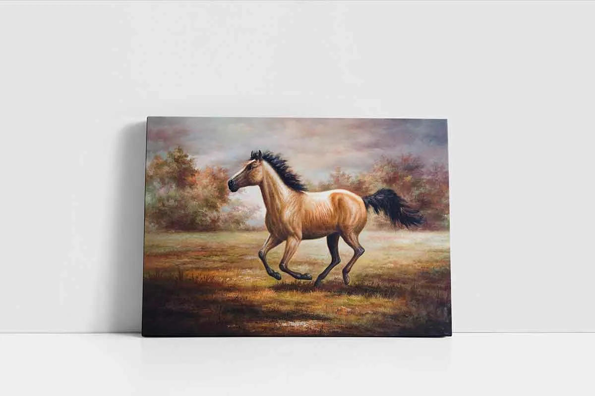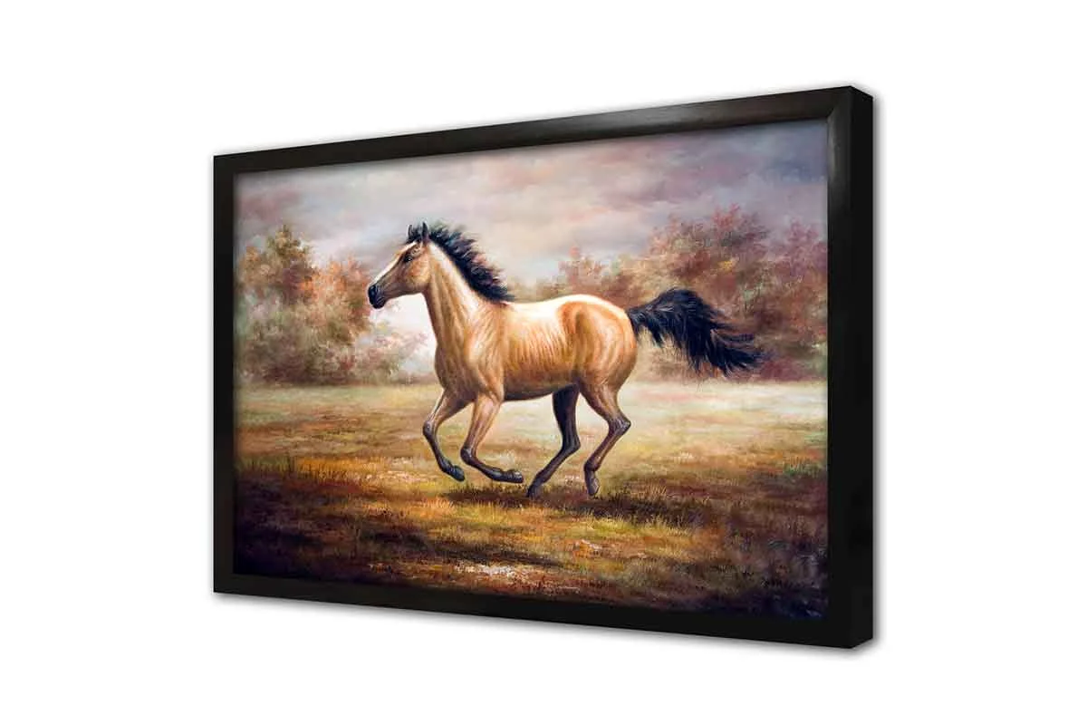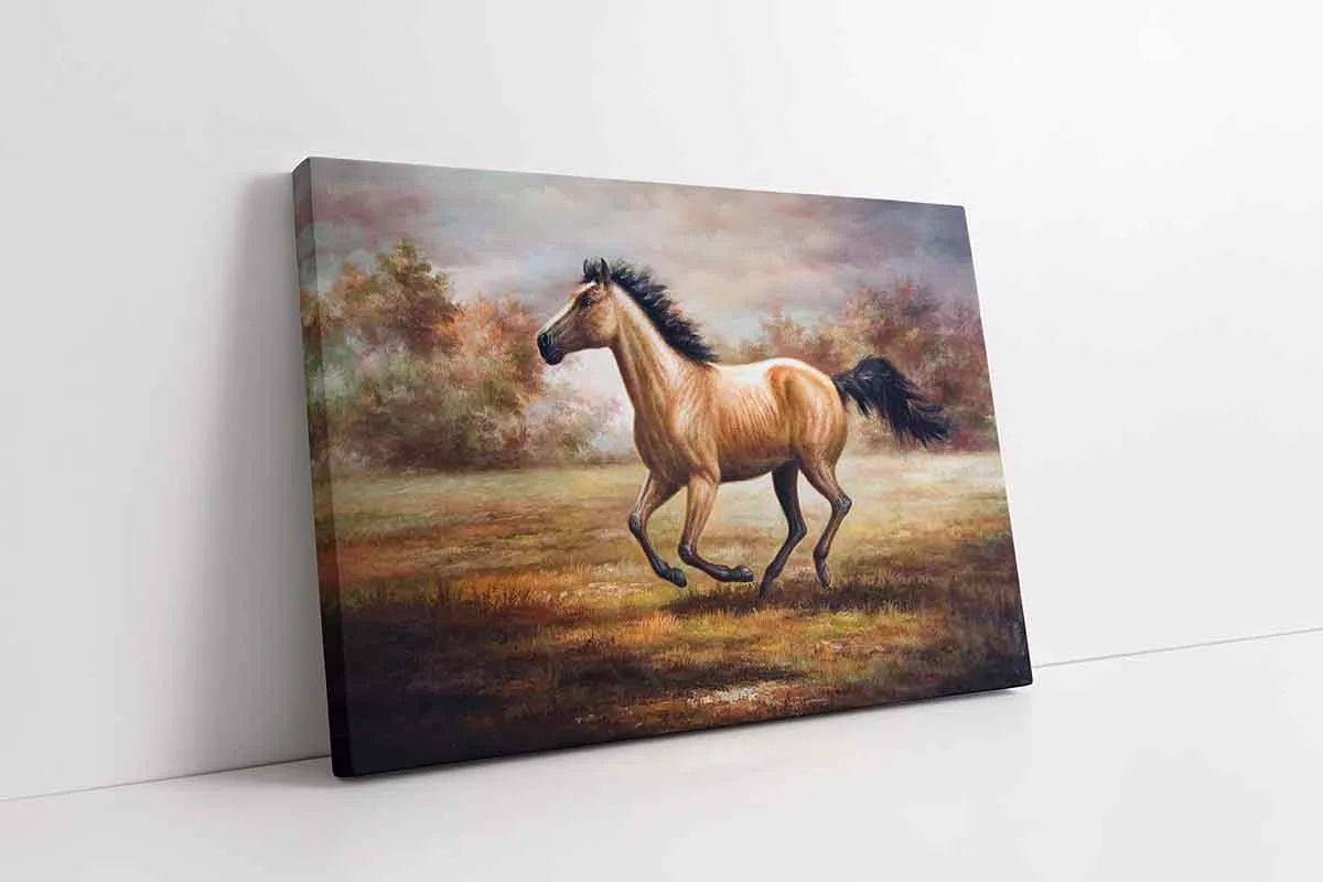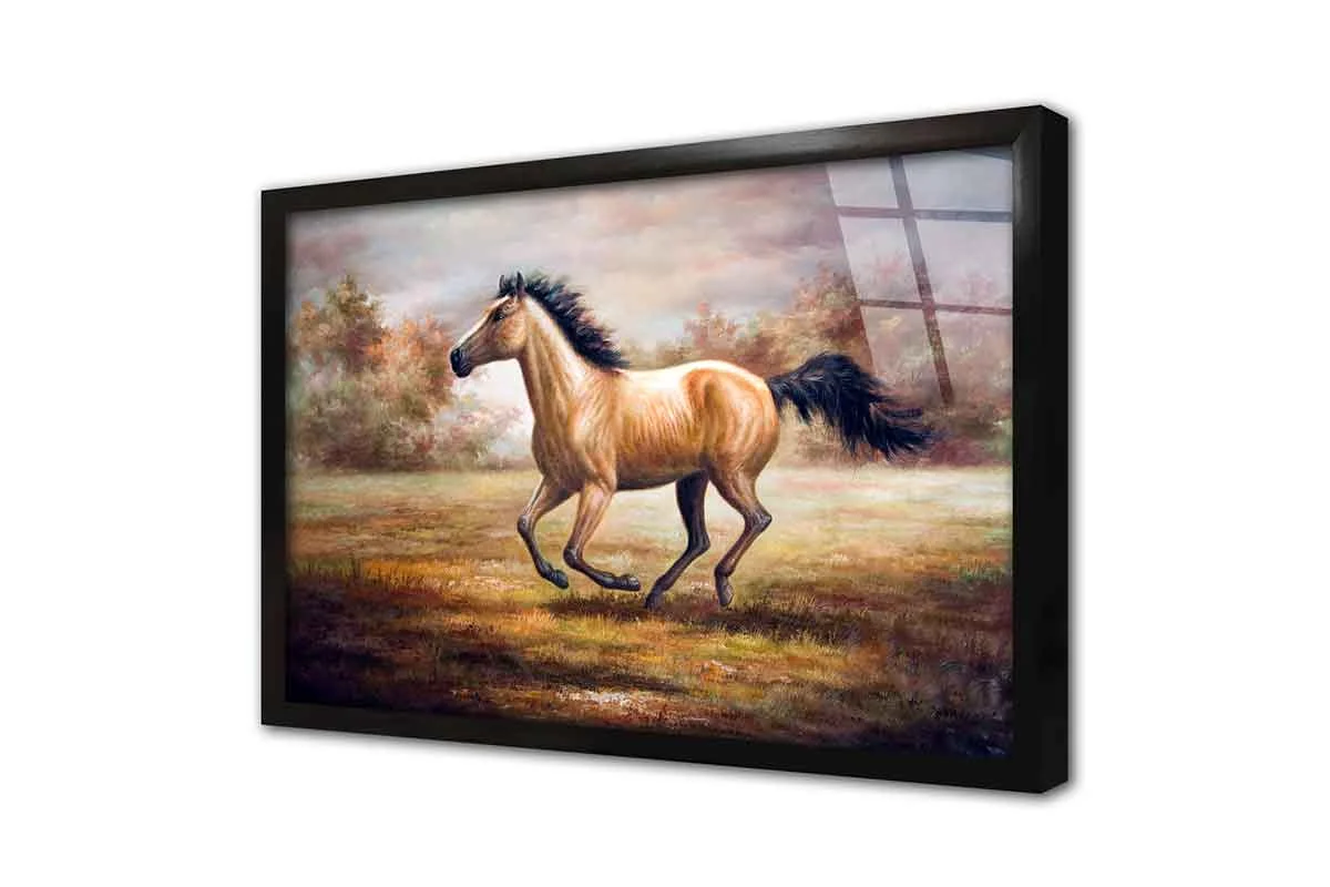 Doğada Koşan Siyah Yeleli At | Kanvas Tablo | Cam Tablo | Mdf Tablo | B15022