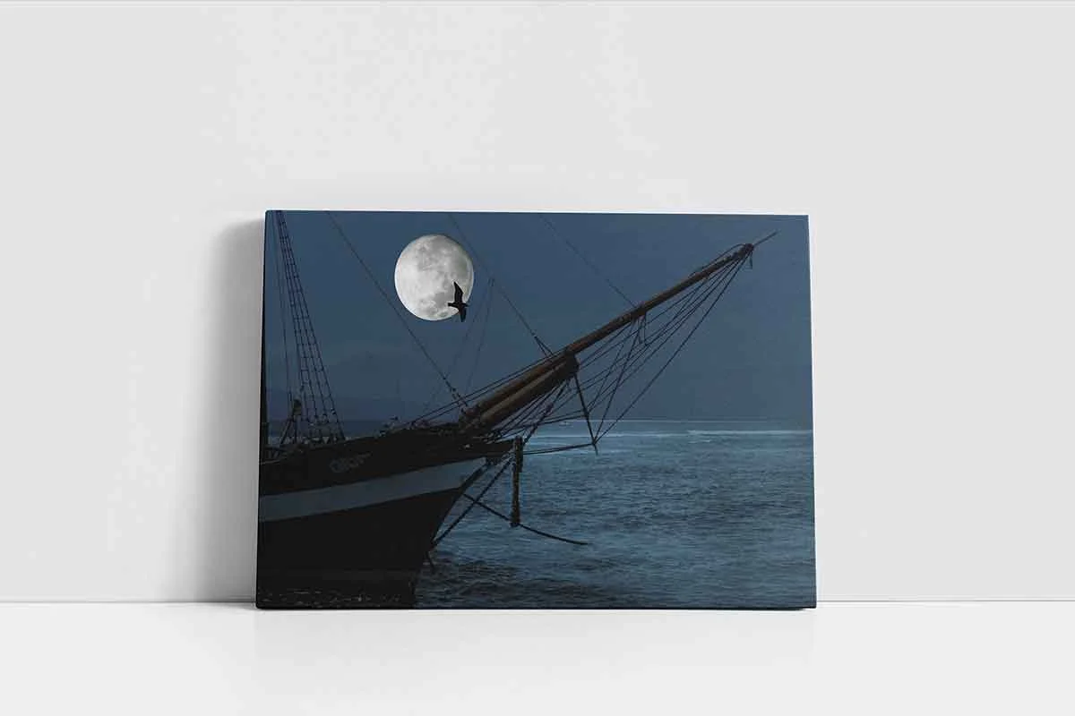 Dolunayda Yüzen Kalyon | Kanvas Tablo | Cam Tablo | Mdf Tablo | A01028