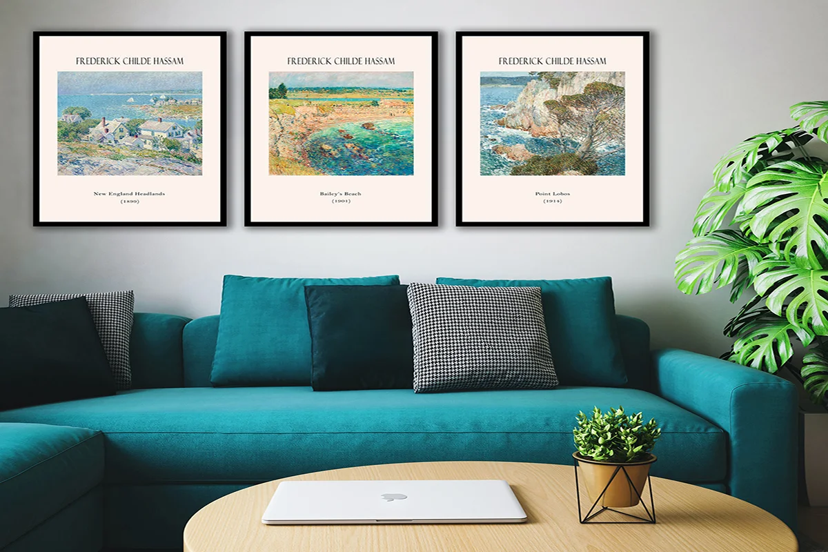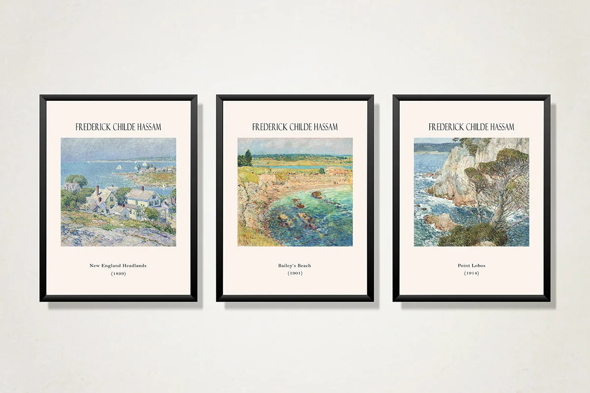 Frederick Childe Hassam Manzara Eserleri Üçlü Kanvas Tablo | Cam Tablo | Mdf Tablo Seti | B33368
