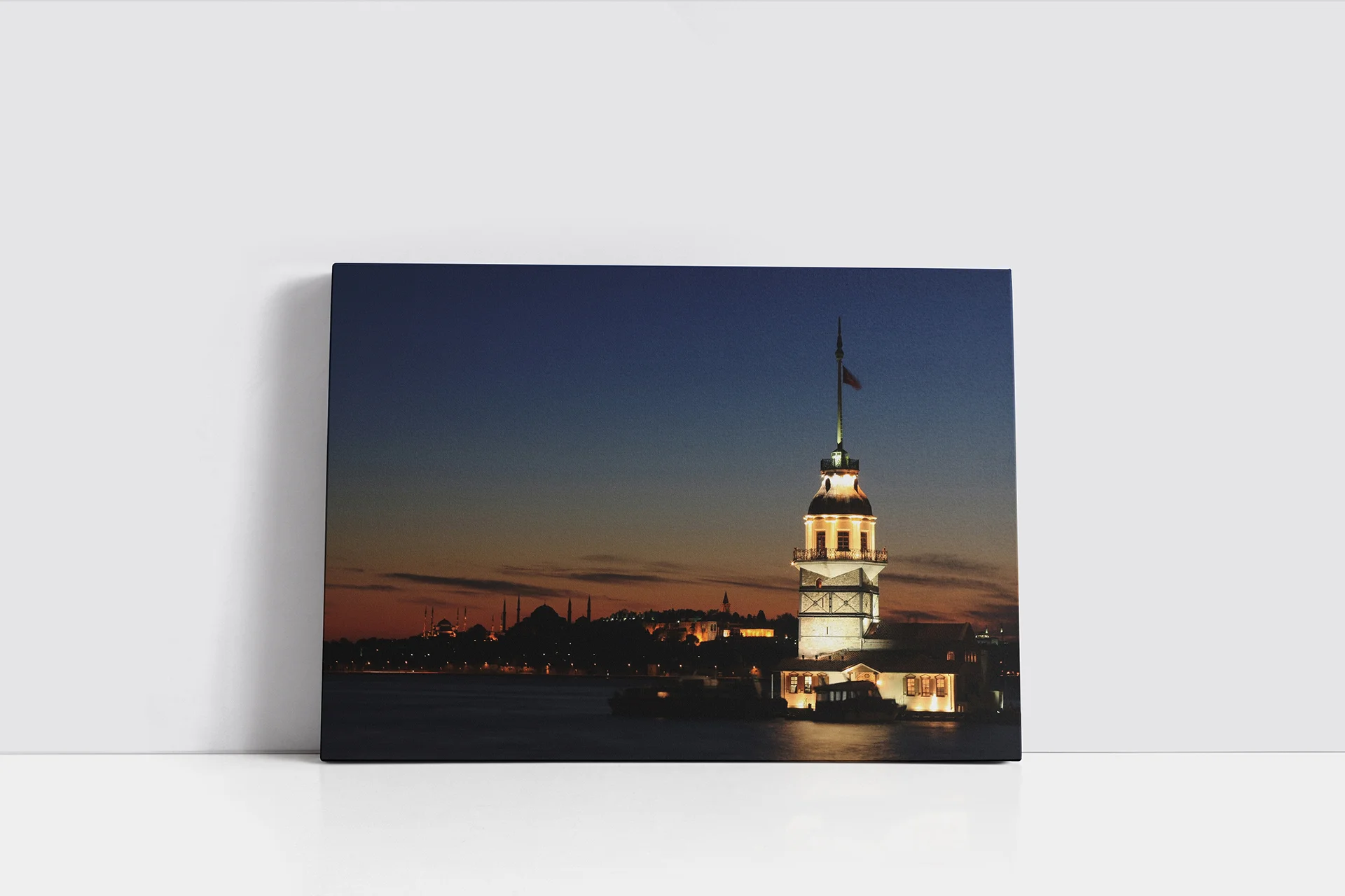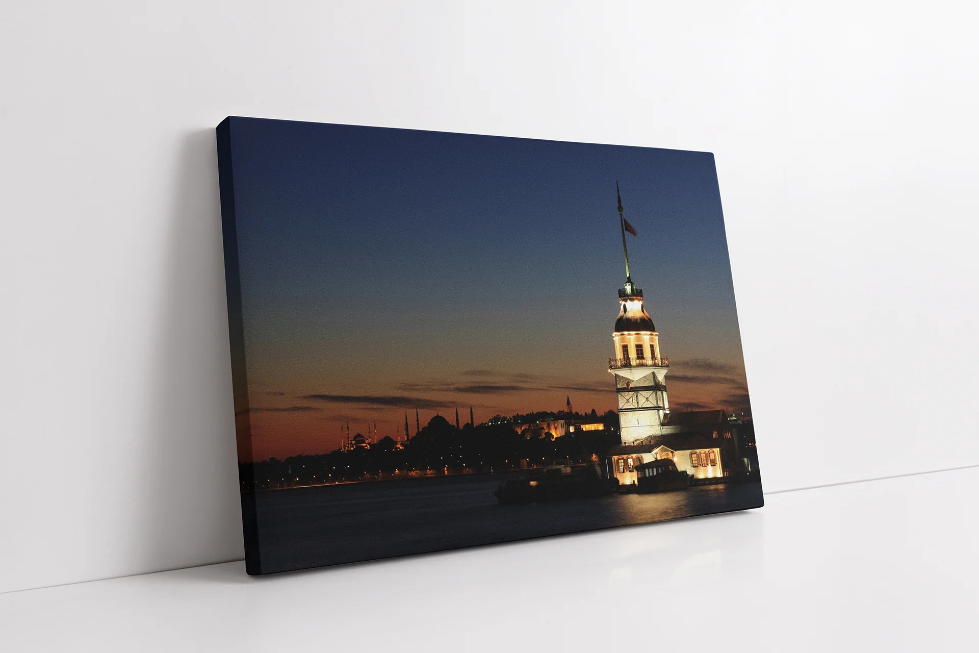 Gece Kız Kulesi | Kanvas Tablo | Cam Tablo | Mdf Tablo | A16194