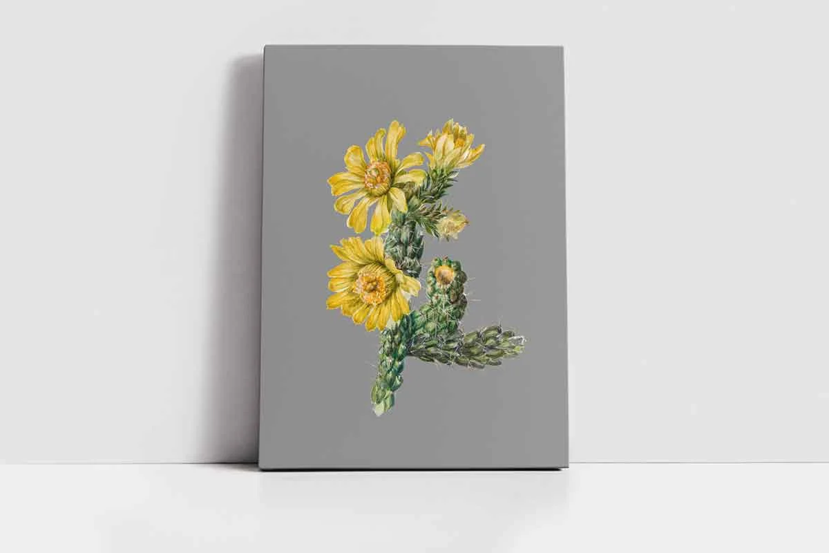 Gri Zemin Sarı Çiçek Iı | Kanvas Tablo | Cam Tablo | Mdf Tablo | B33114