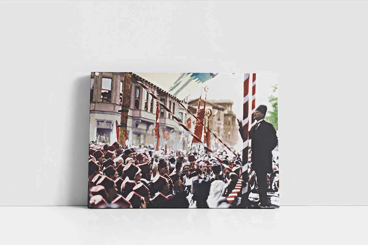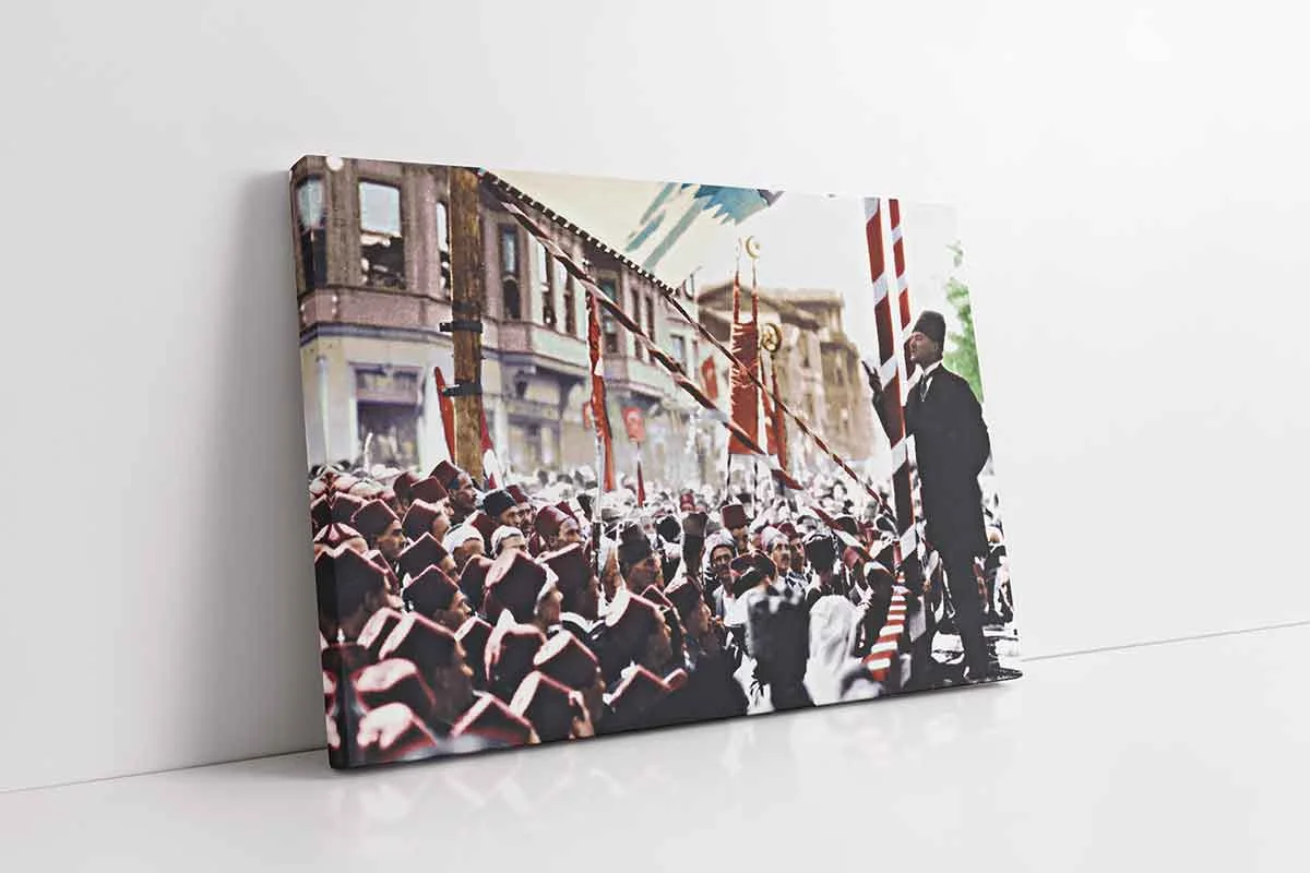 Halka Seslenen Atatürk | Kanvas Tablo | Cam Tablo | Mdf Tablo | A02023