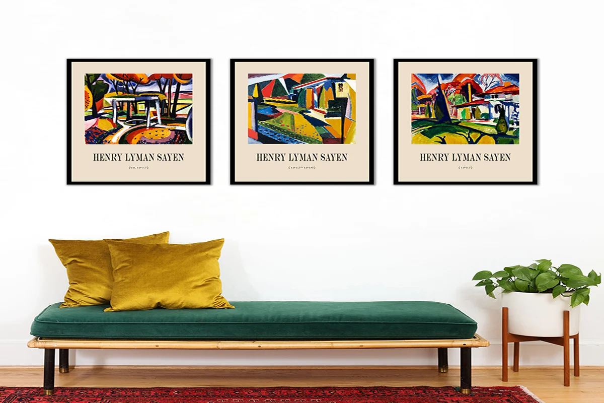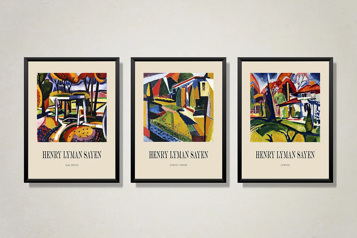Henry Lyman Sayen Modern Manzara Eserleri Üçlü Kanvas Tablo | Cam Tablo | Mdf Tablo Seti | B33371