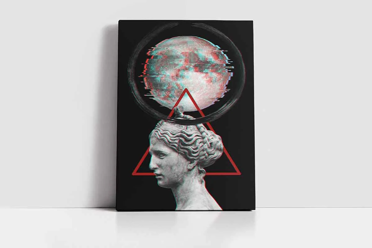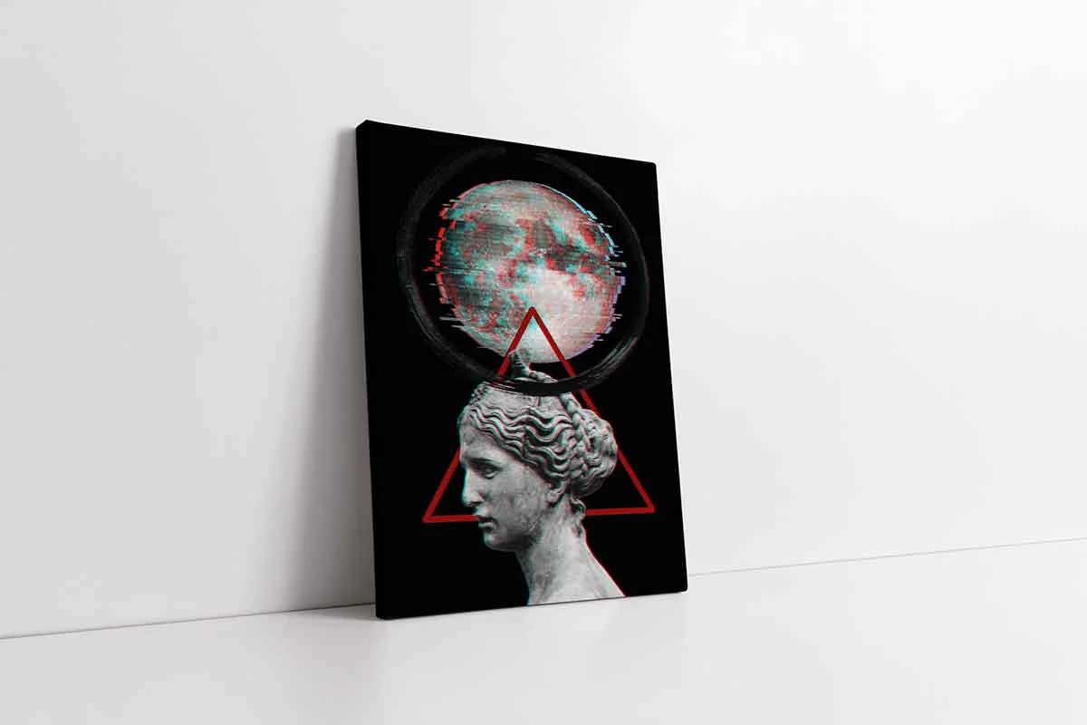 Heykel Ve Ay Modern Tasarım | Kanvas Tablo | Cam Tablo | Mdf Tablo | B33221