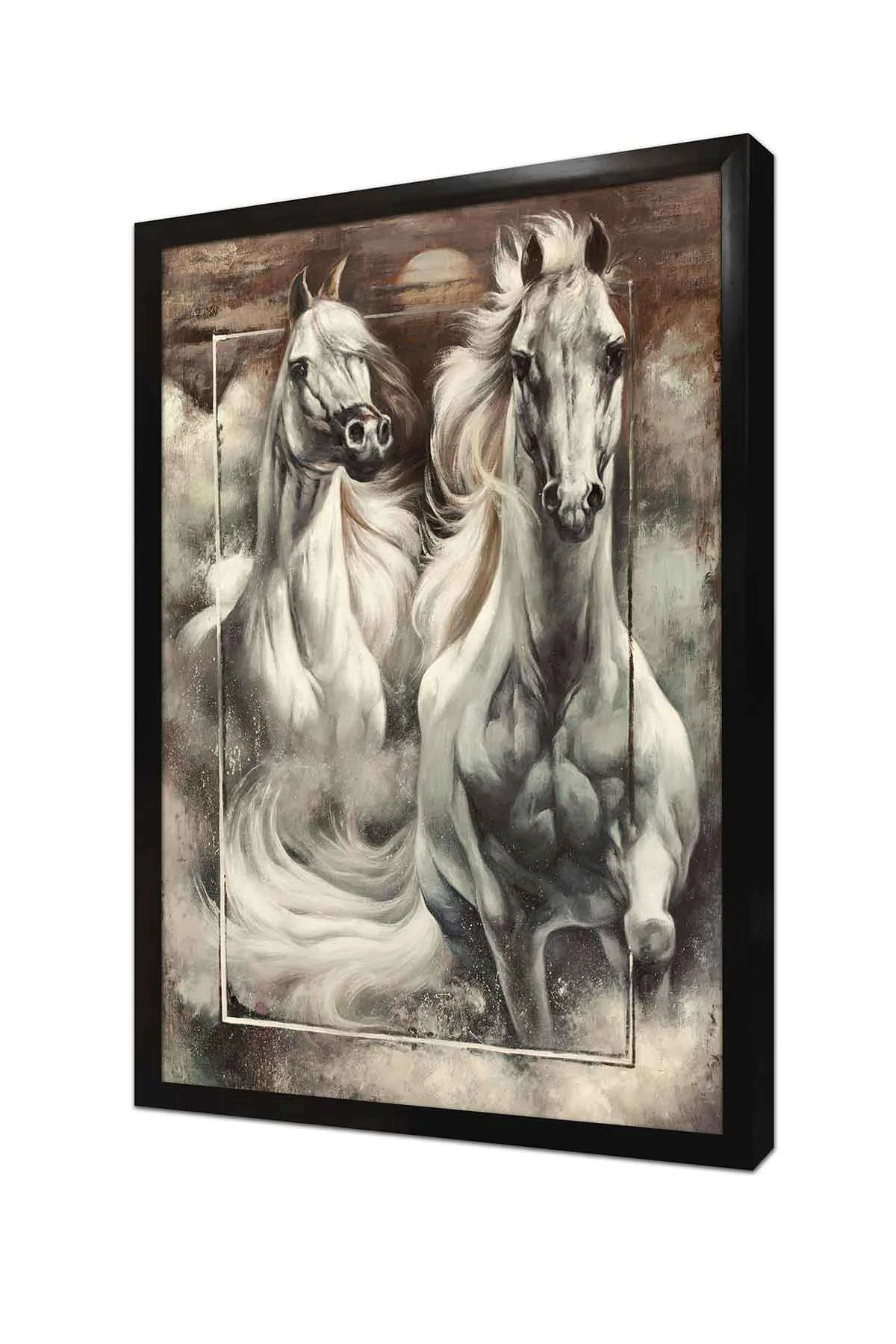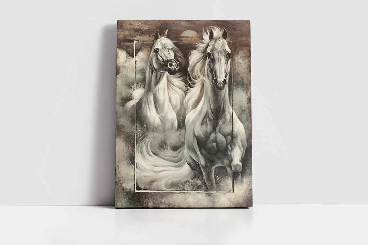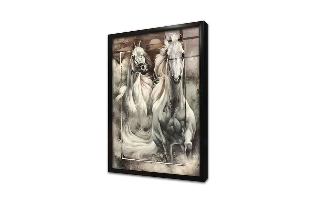 İkili Beyaz At Portre | Kanvas Tablo | Cam Tablo | Mdf Tablo | B15045
