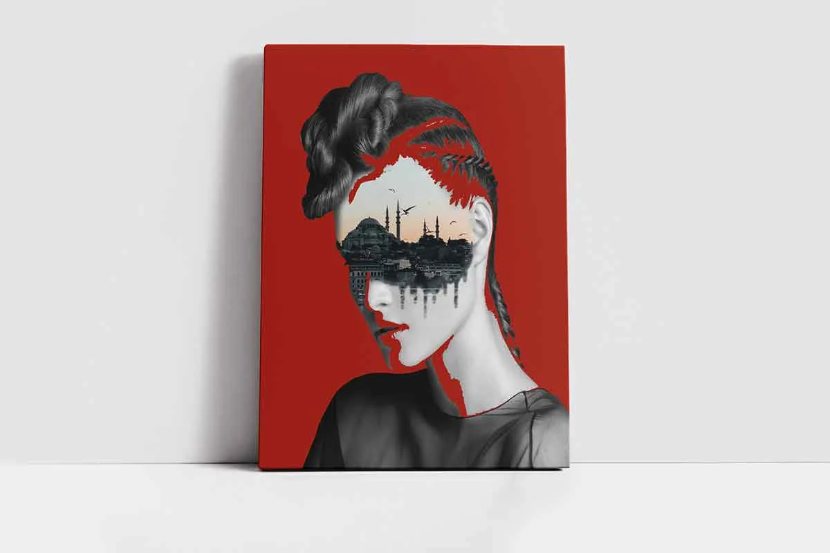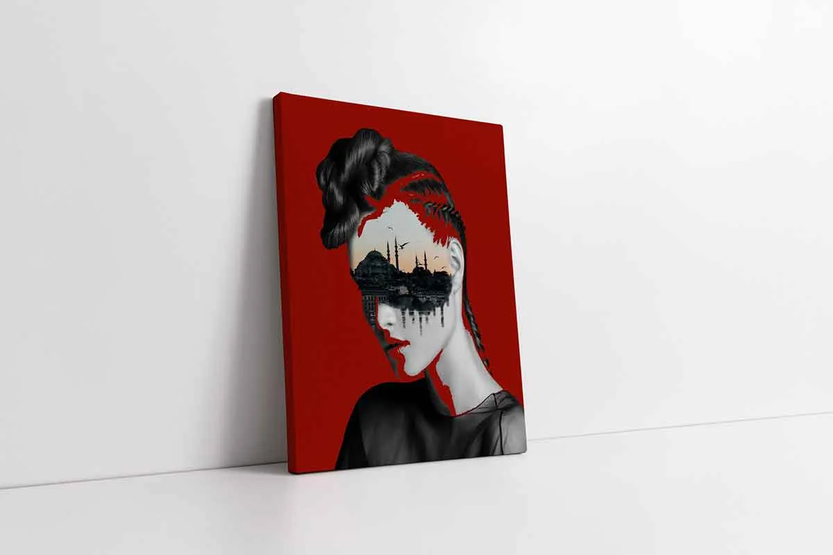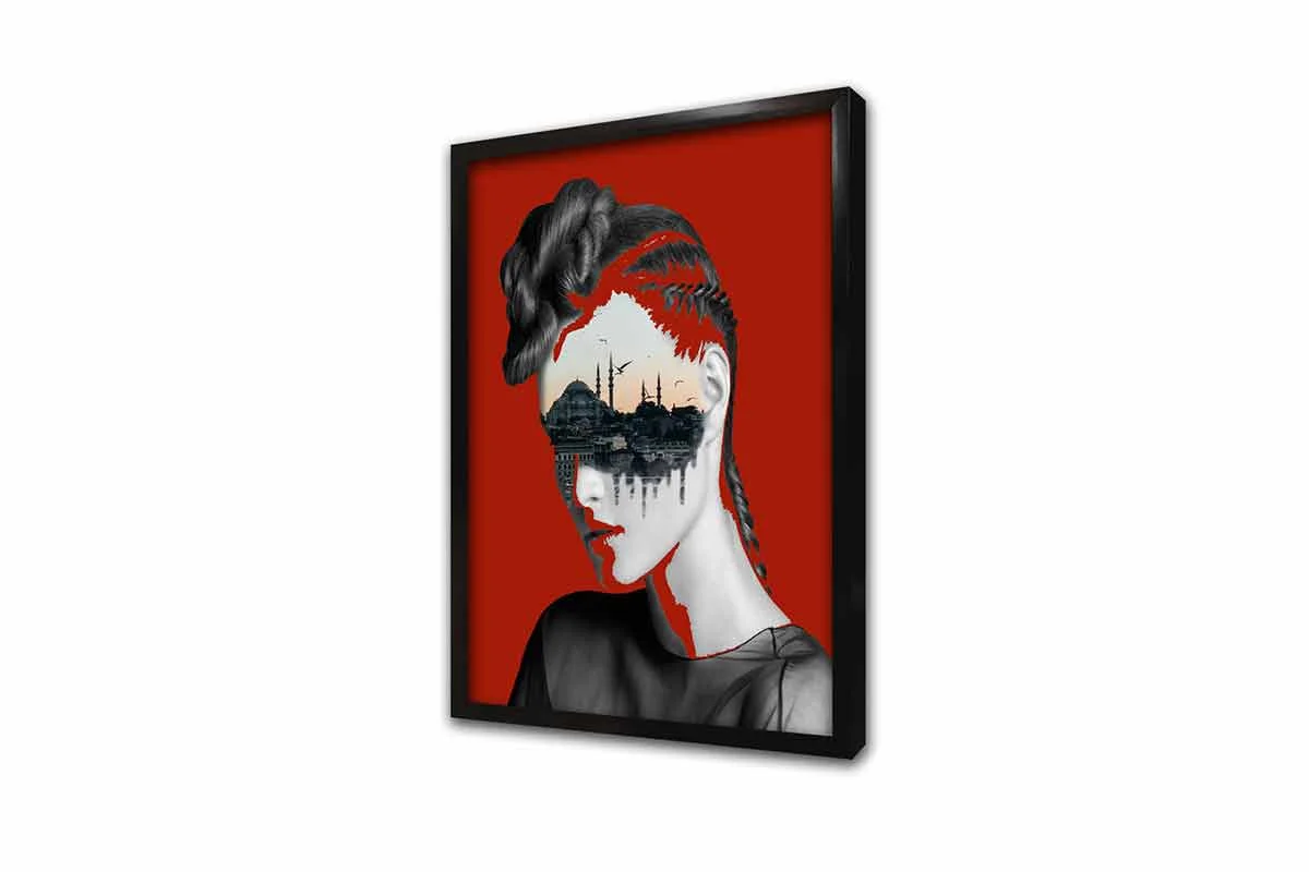 İstanbul Kadın Manipülasyon Kırmızı | Kanvas Tablo | Cam Tablo | Mdf Tablo | B33028
