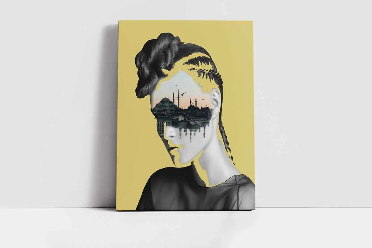 İstanbul Kadın Manipülasyon Sarı | Kanvas Tablo | Cam Tablo | Mdf Tablo | B33031