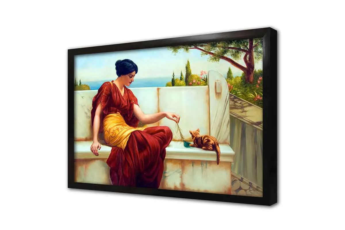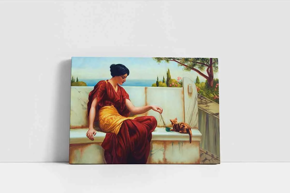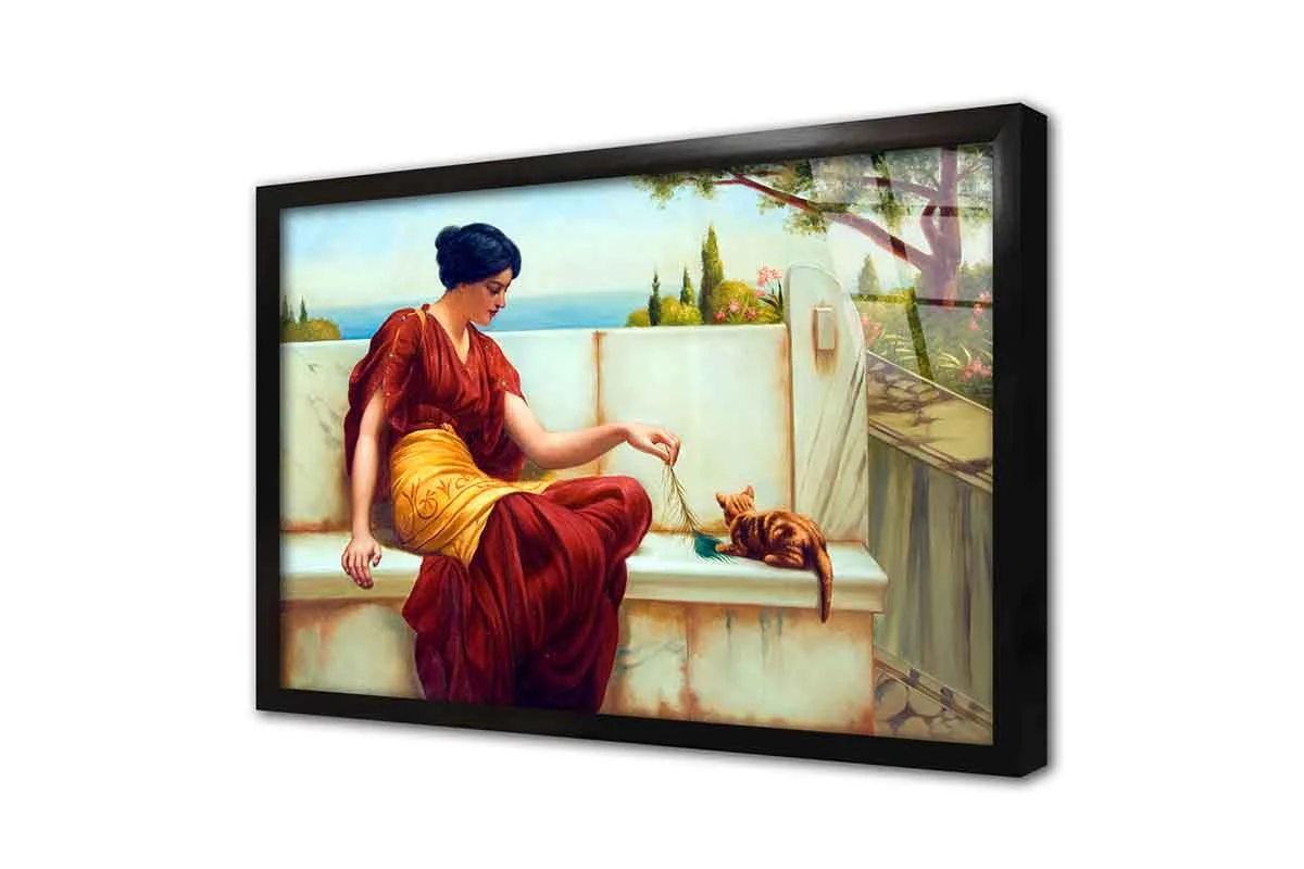 Kediyle Oynayan Kadın | Kanvas Tablo | Cam Tablo | Mdf Tablo | B13077