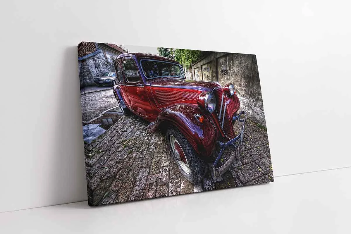 Kırmızı Klasik Araba | Kanvas Tablo | Cam Tablo | Mdf Tablo | A01107