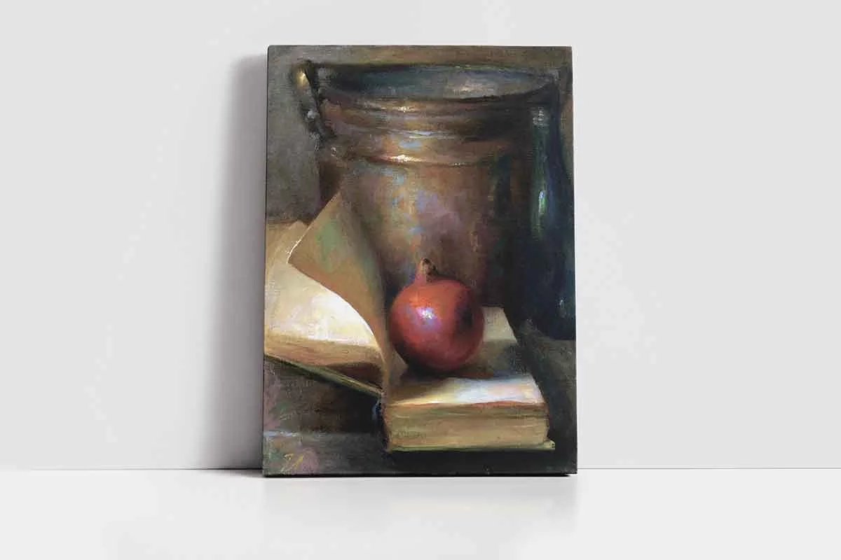 Kitap Arasında Nar | Kanvas Tablo | Cam Tablo | Mdf Tablo | B18053