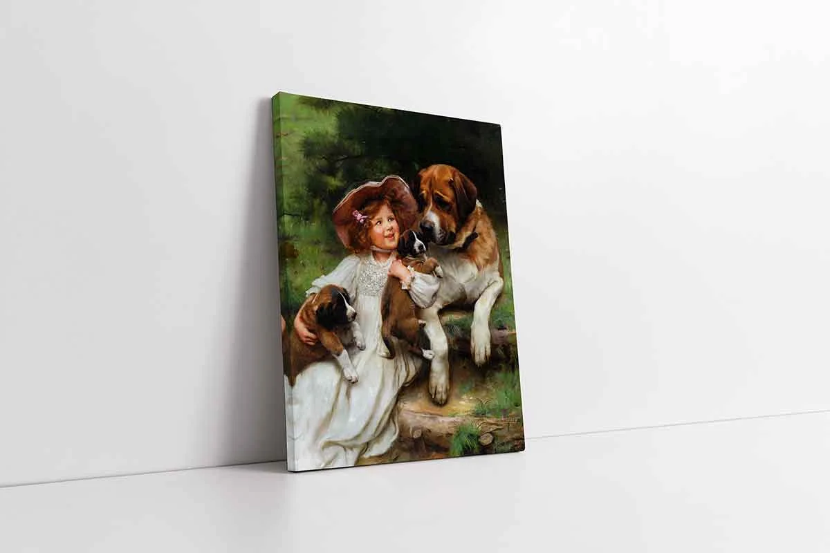 Köpeklerle Çocuk | Kanvas Tablo | Cam Tablo | Mdf Tablo | B22592