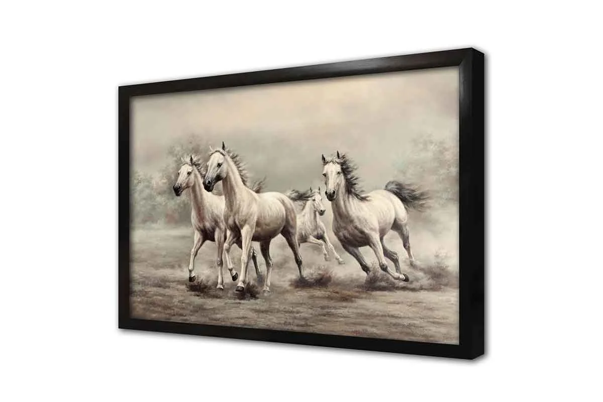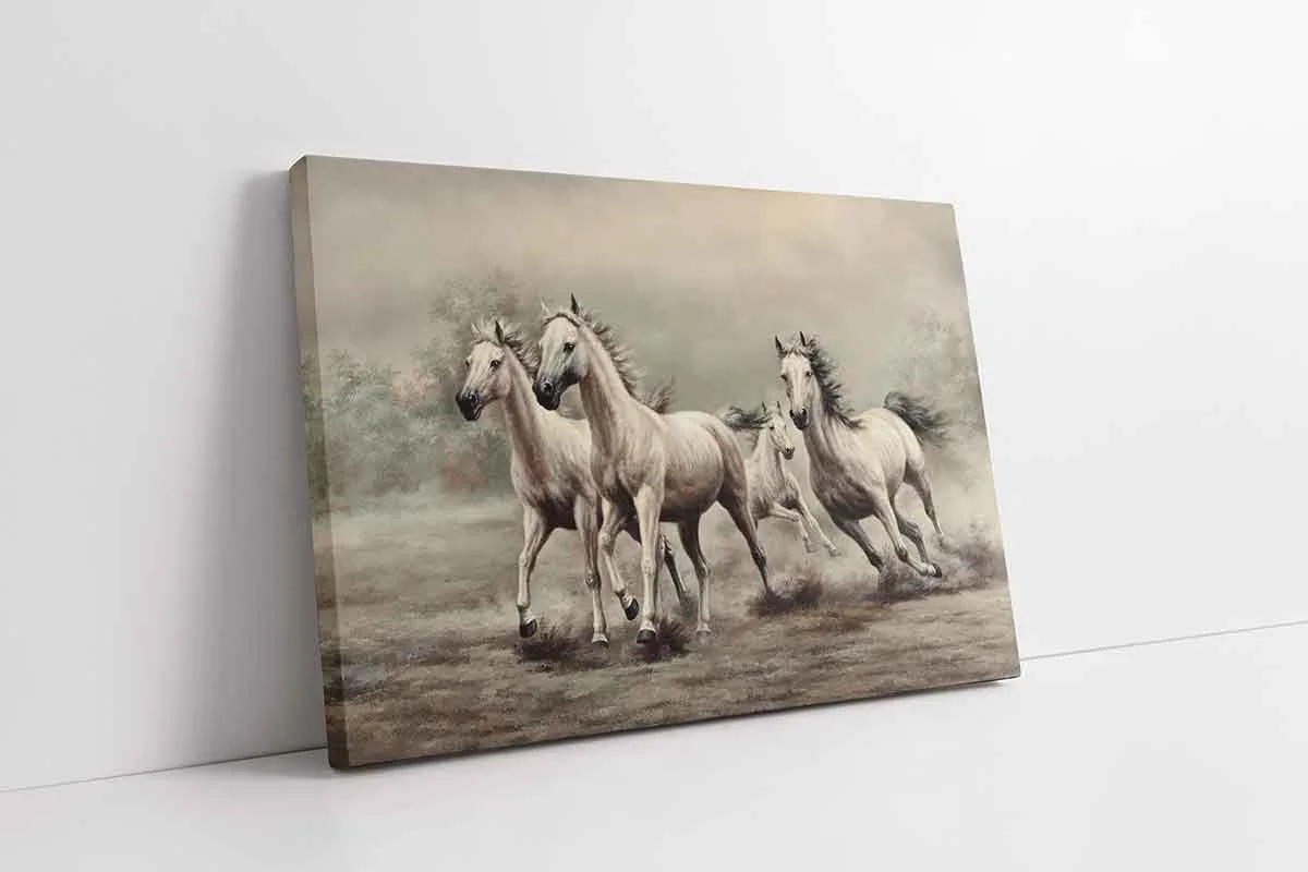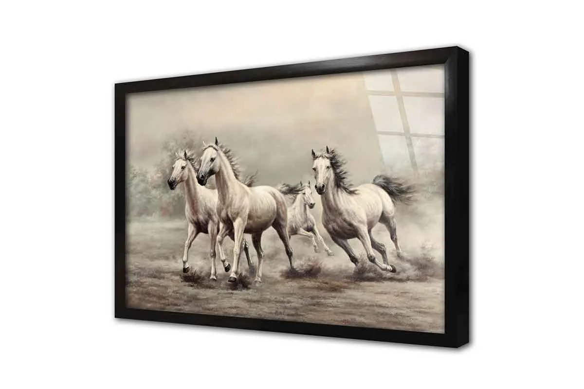 Koşan Dörtlü Beyaz At | Kanvas Tablo | Cam Tablo | Mdf Tablo | B15089