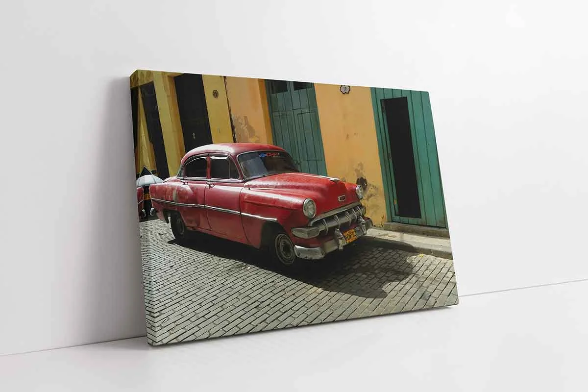 Kübada Kırmızı Klasik Araba | Kanvas Tablo | Cam Tablo | Mdf Tablo | A01241
