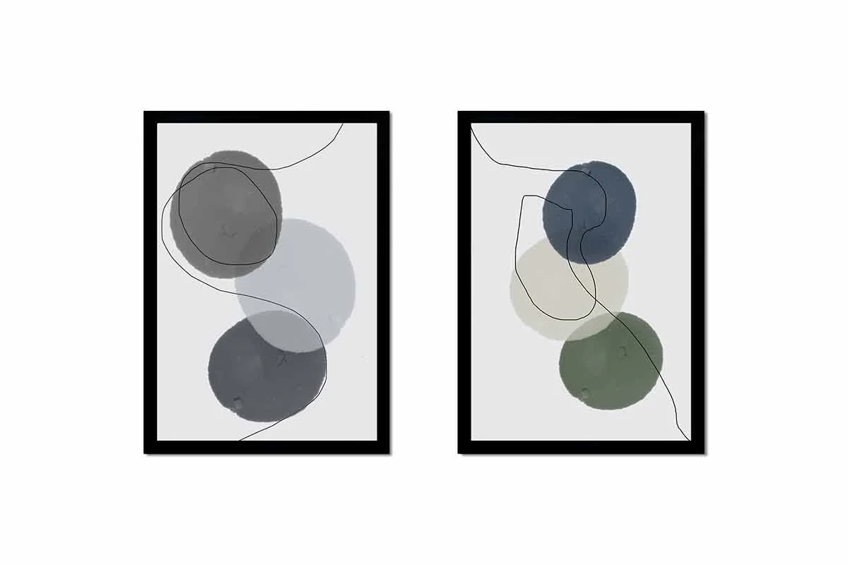 Line Art Soyut Daireler İkili Kanvas Tablo | Cam Tablo | Mdf Tablo Seti | B33159