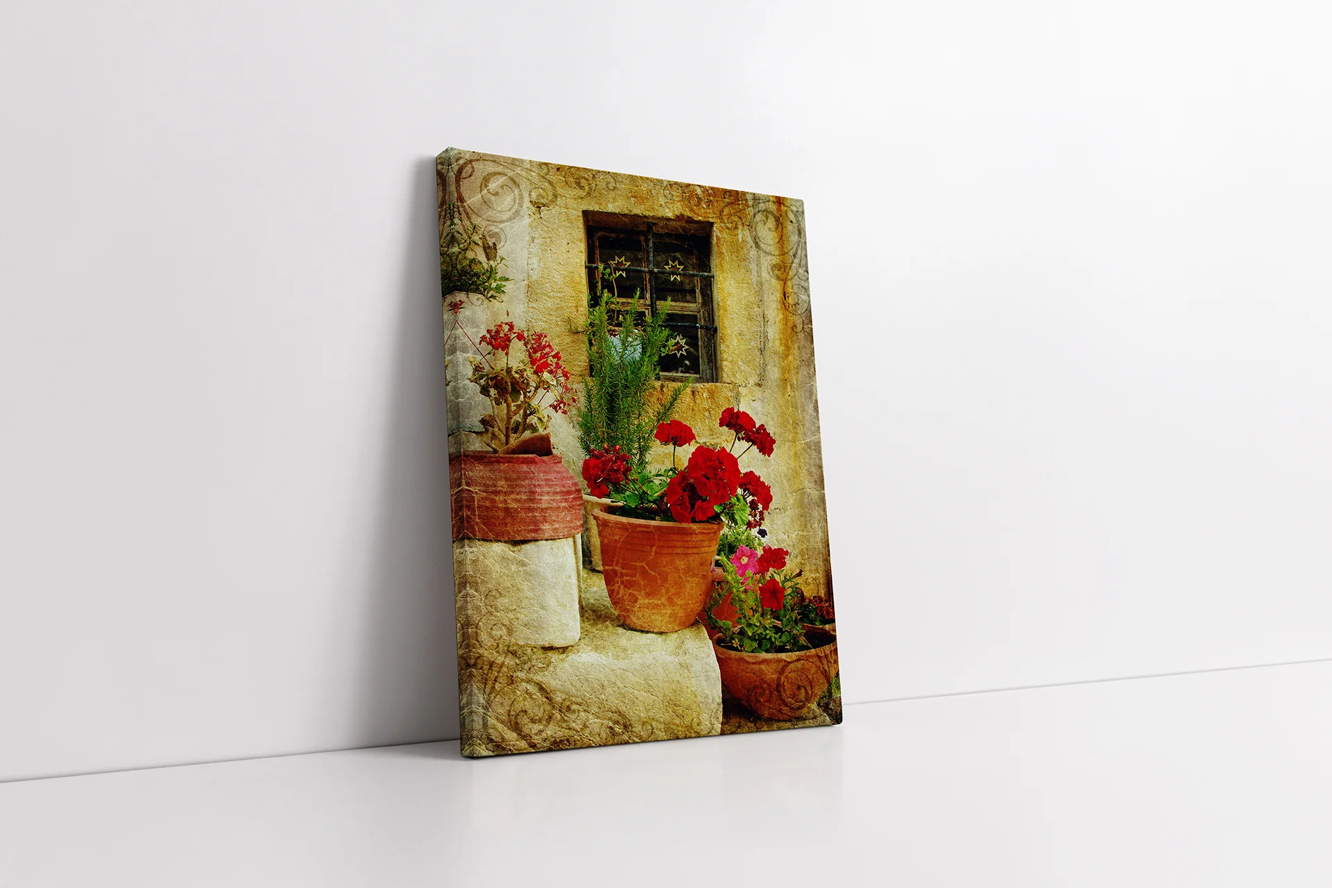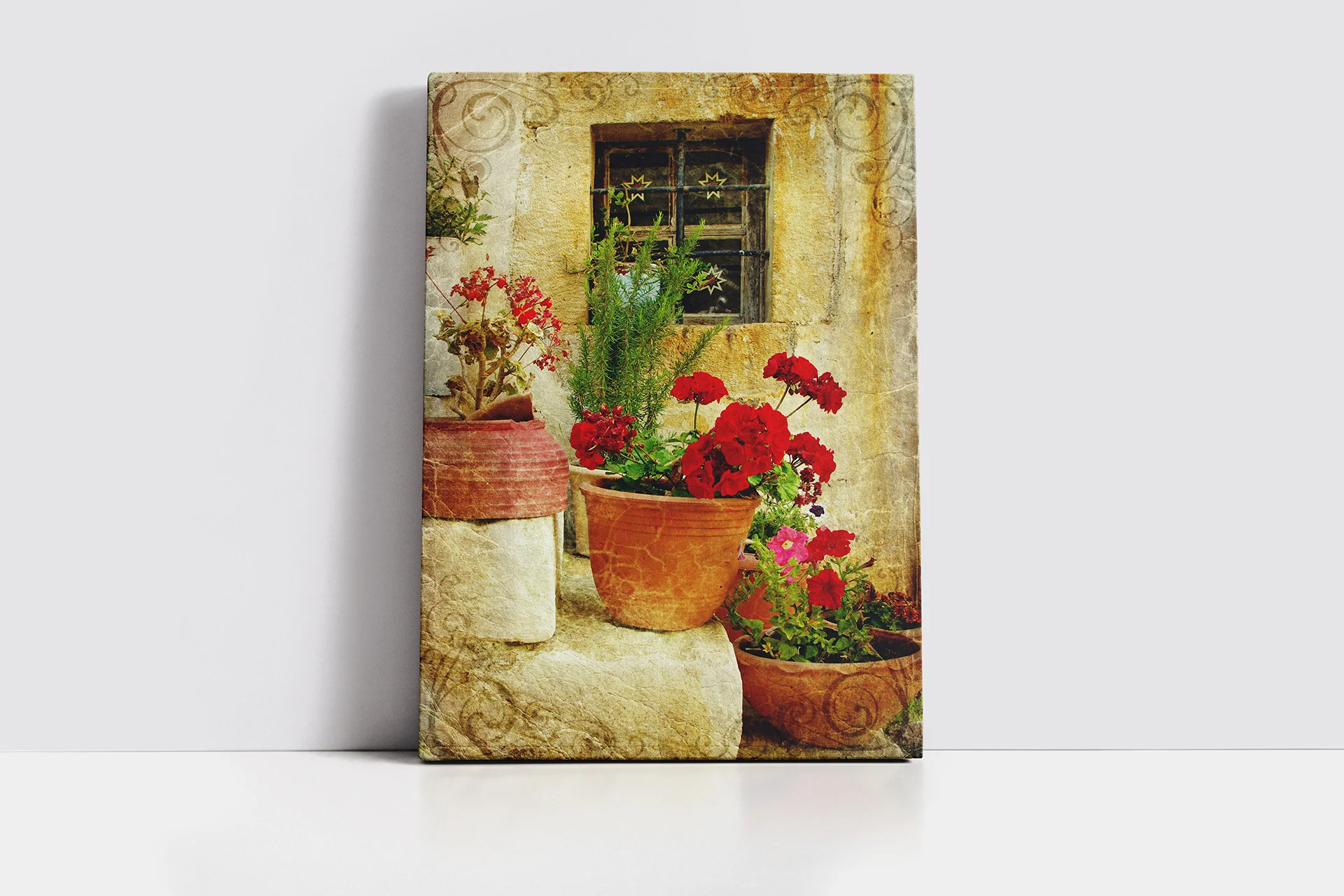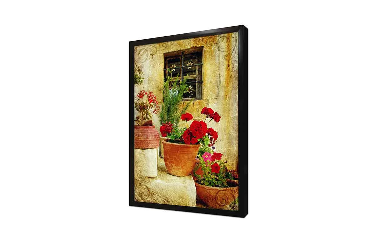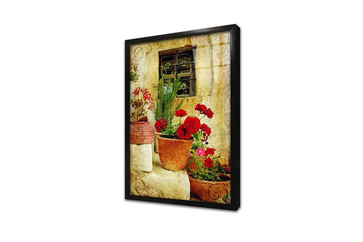 Merdiven Üstünde Saksılar | Kanvas Tablo | Cam Tablo | Mdf Tablo | A07215