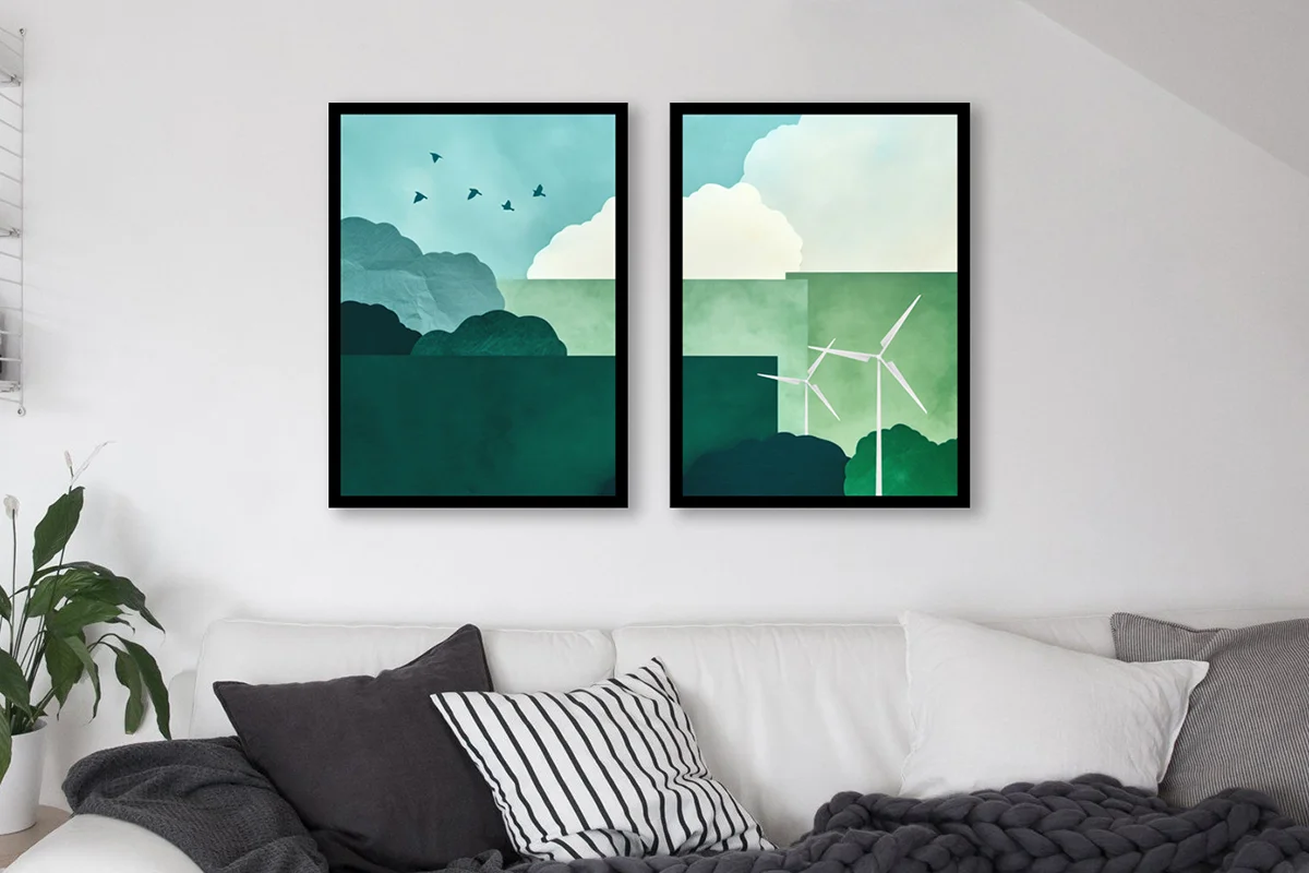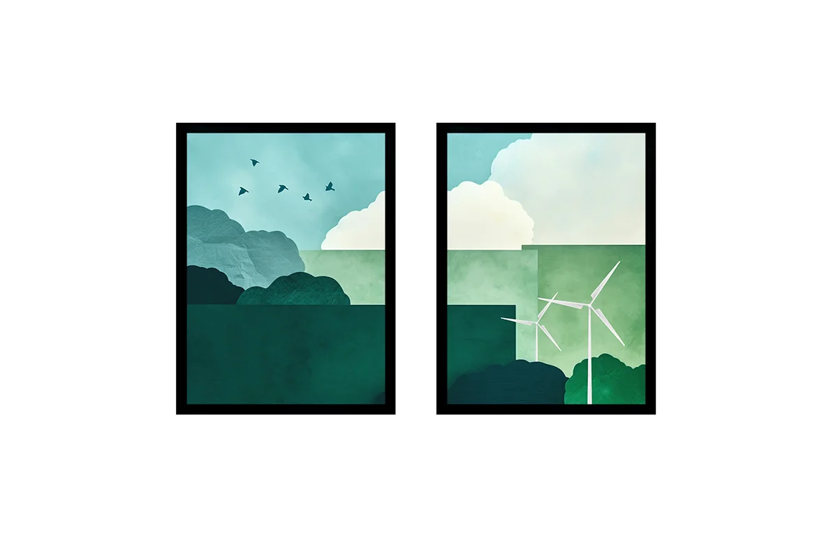 Modern Manzara İkili Kanvas Tablo | Cam Tablo | Mdf Tablo Seti | B33402