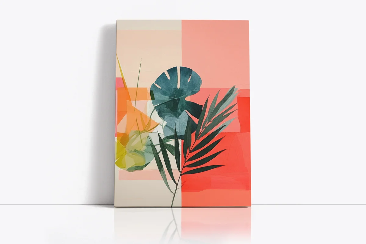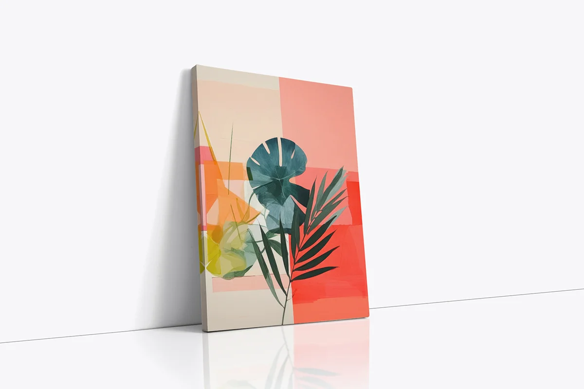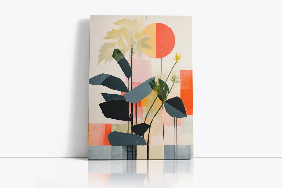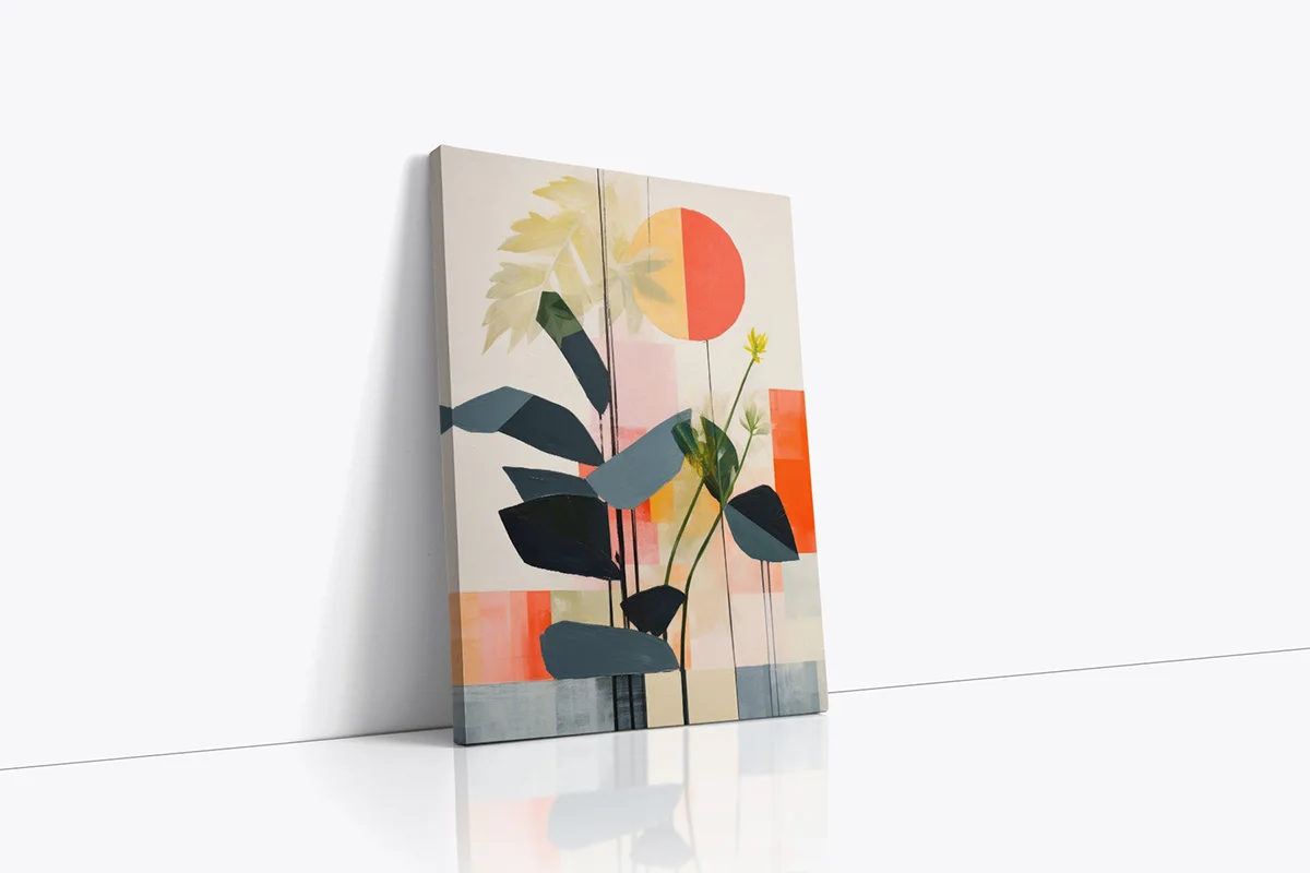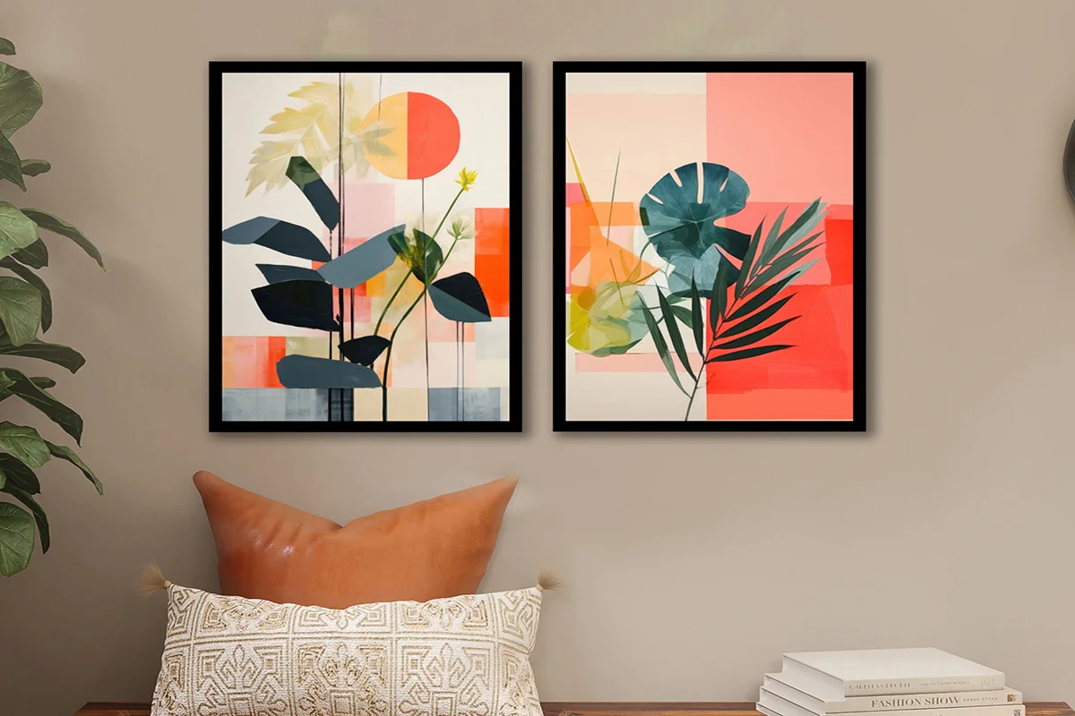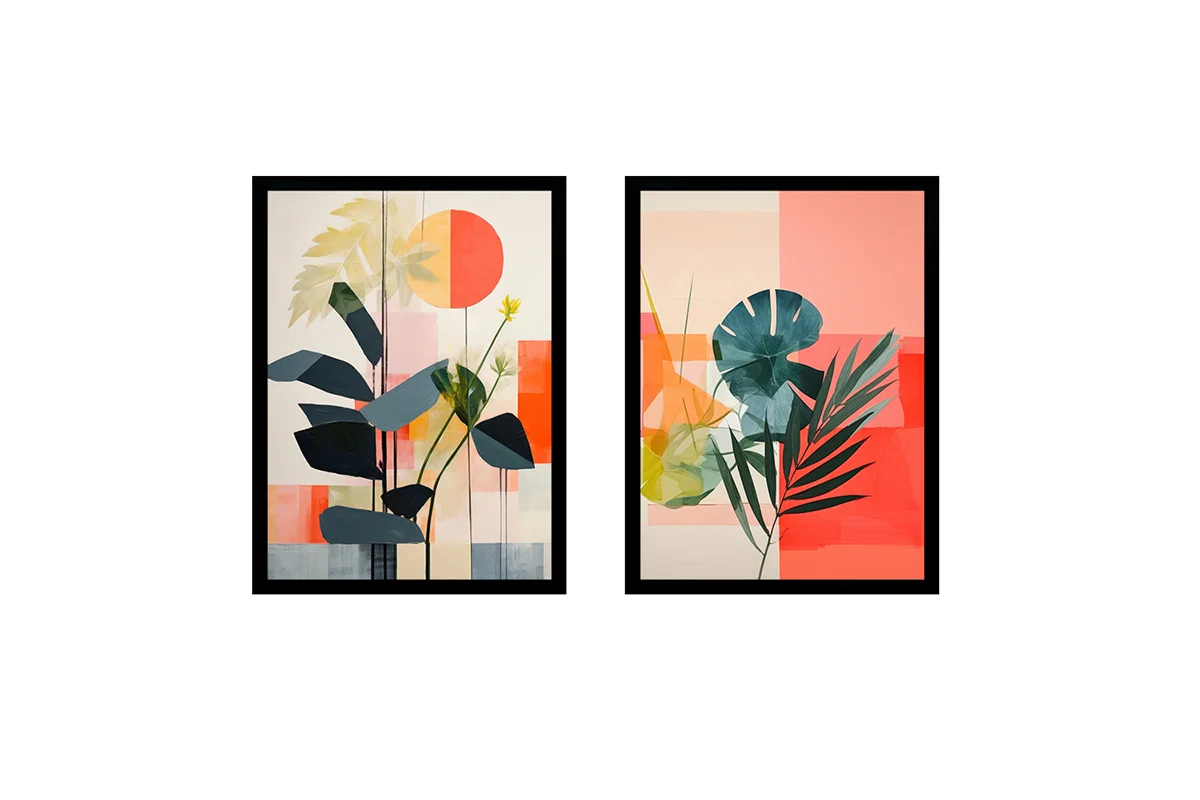 Renkli Desenler Ve Botanik Bitkiler İkili Kanvas Tablo | Cam Tablo | Mdf Tablo Seti | B33408
