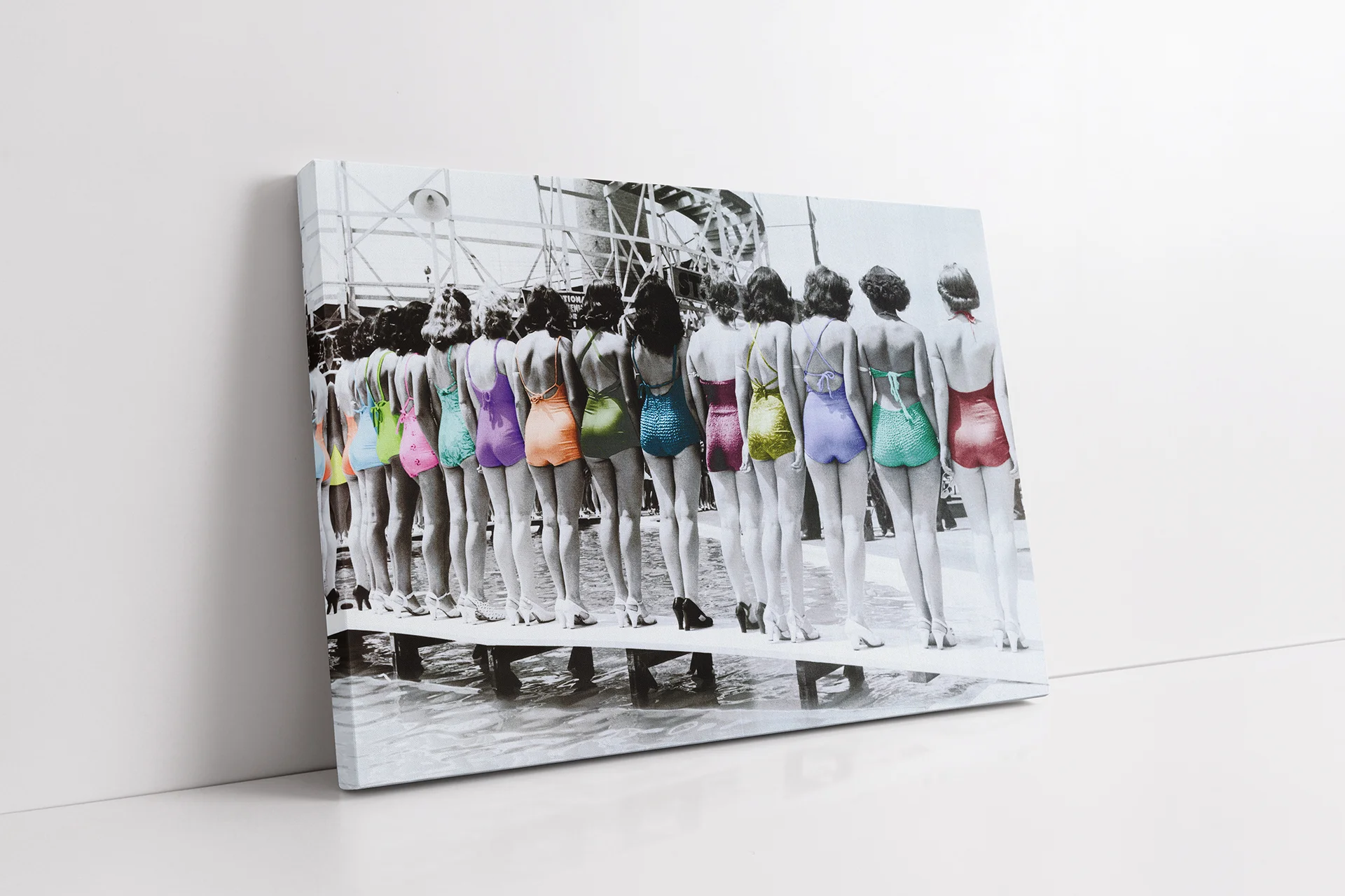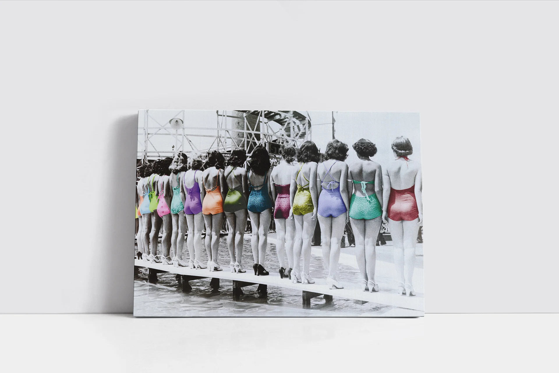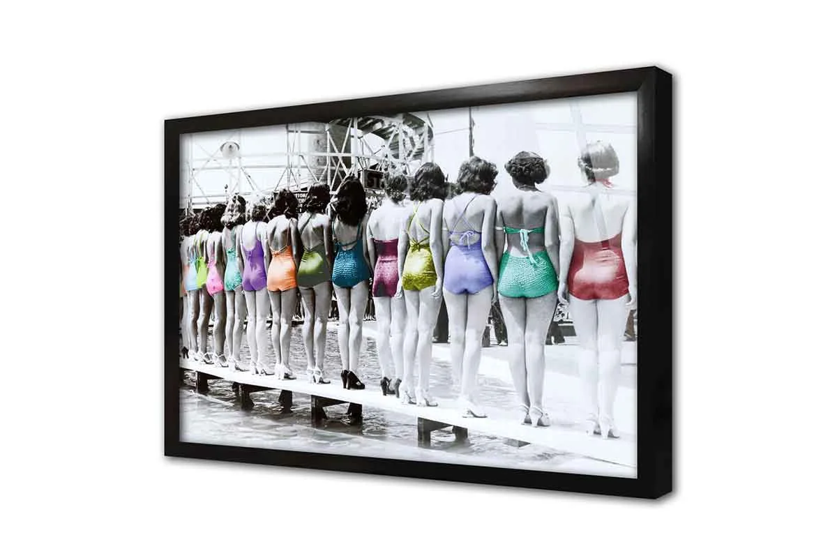 Retro Renkli Mayolu Kadınlar | Kanvas Tablo | Cam Tablo | Mdf Tablo | A10008