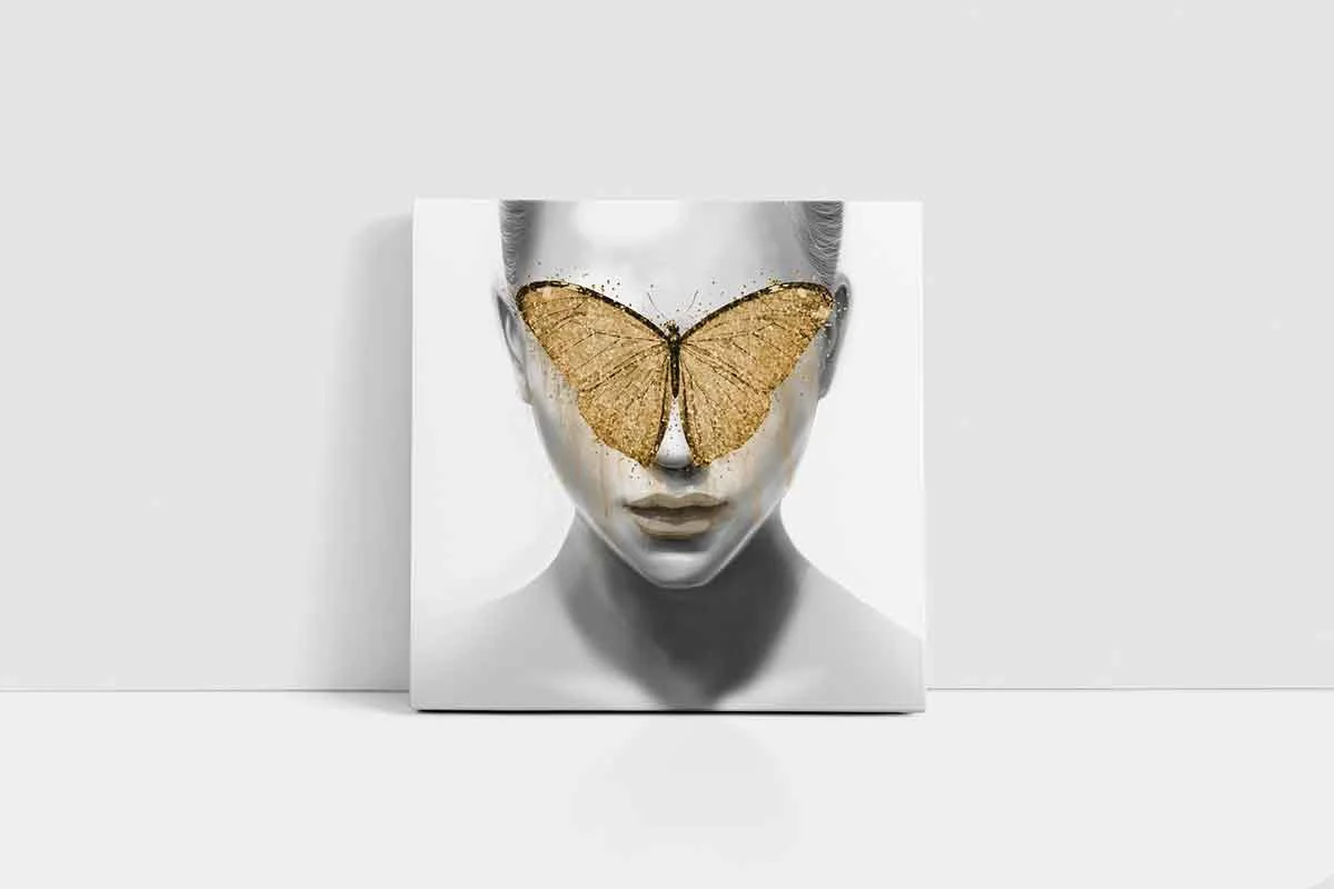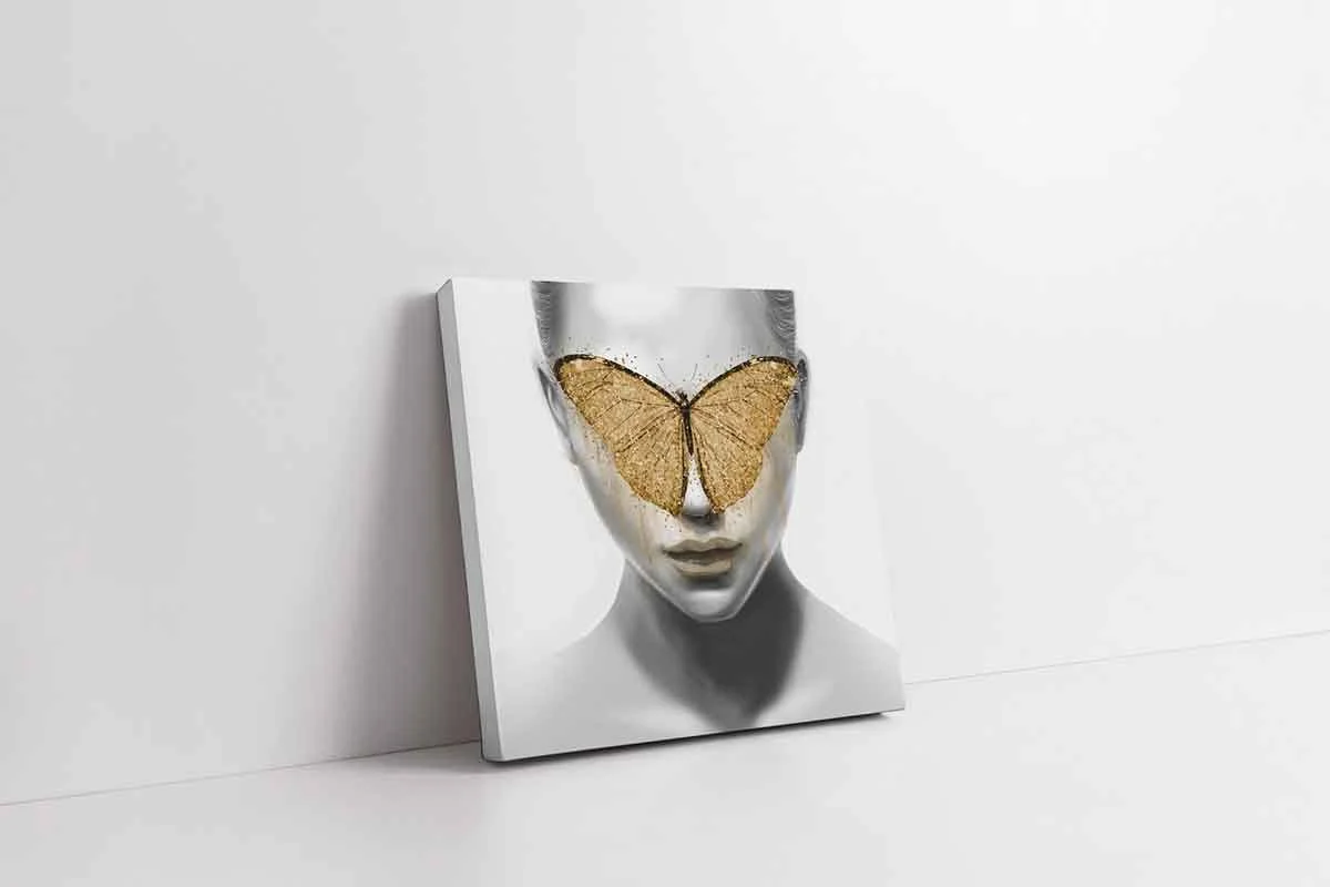 Sarı Kelebek Ve Kadın | Kanvas Tablo | Cam Tablo | Mdf Tablo | B33008