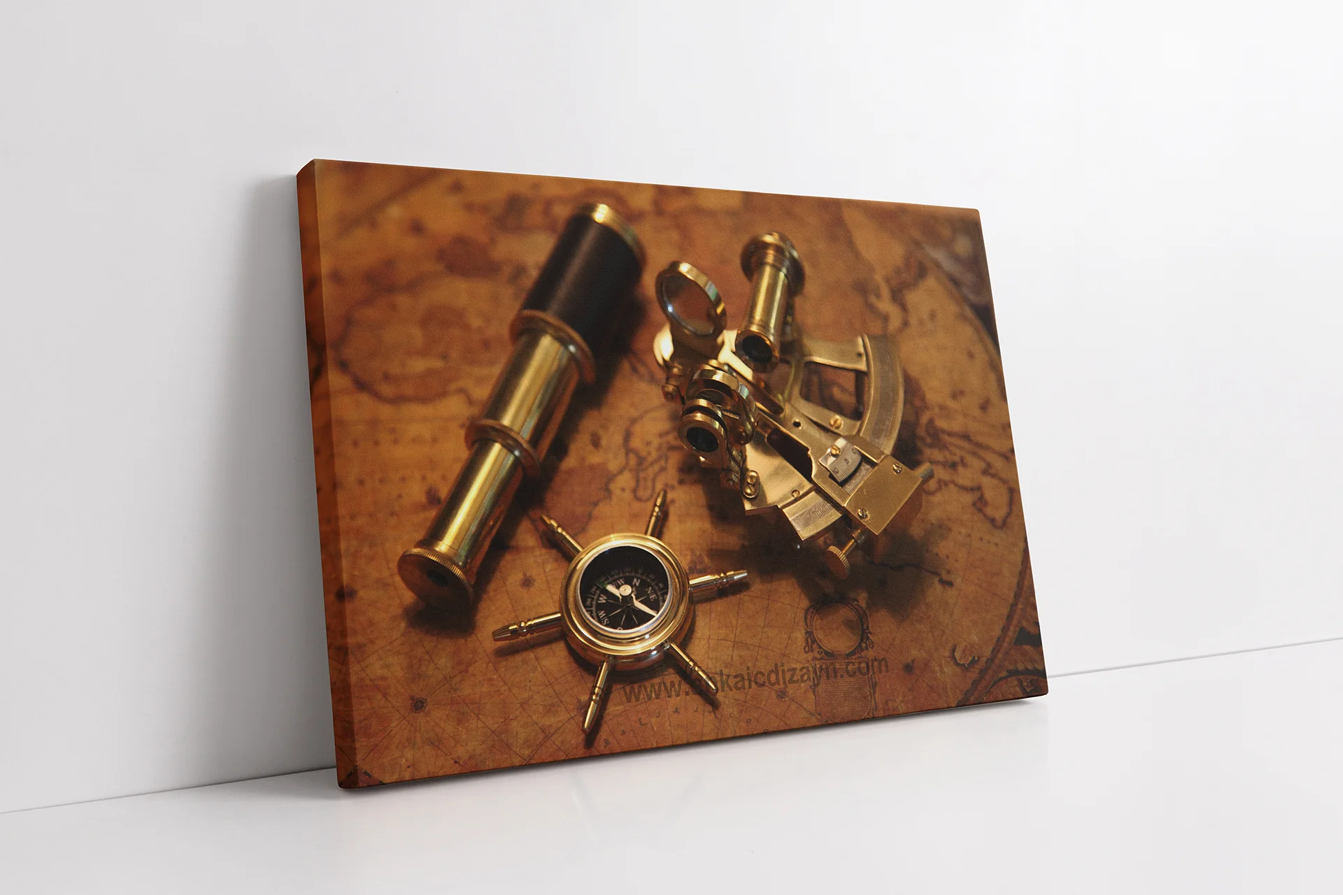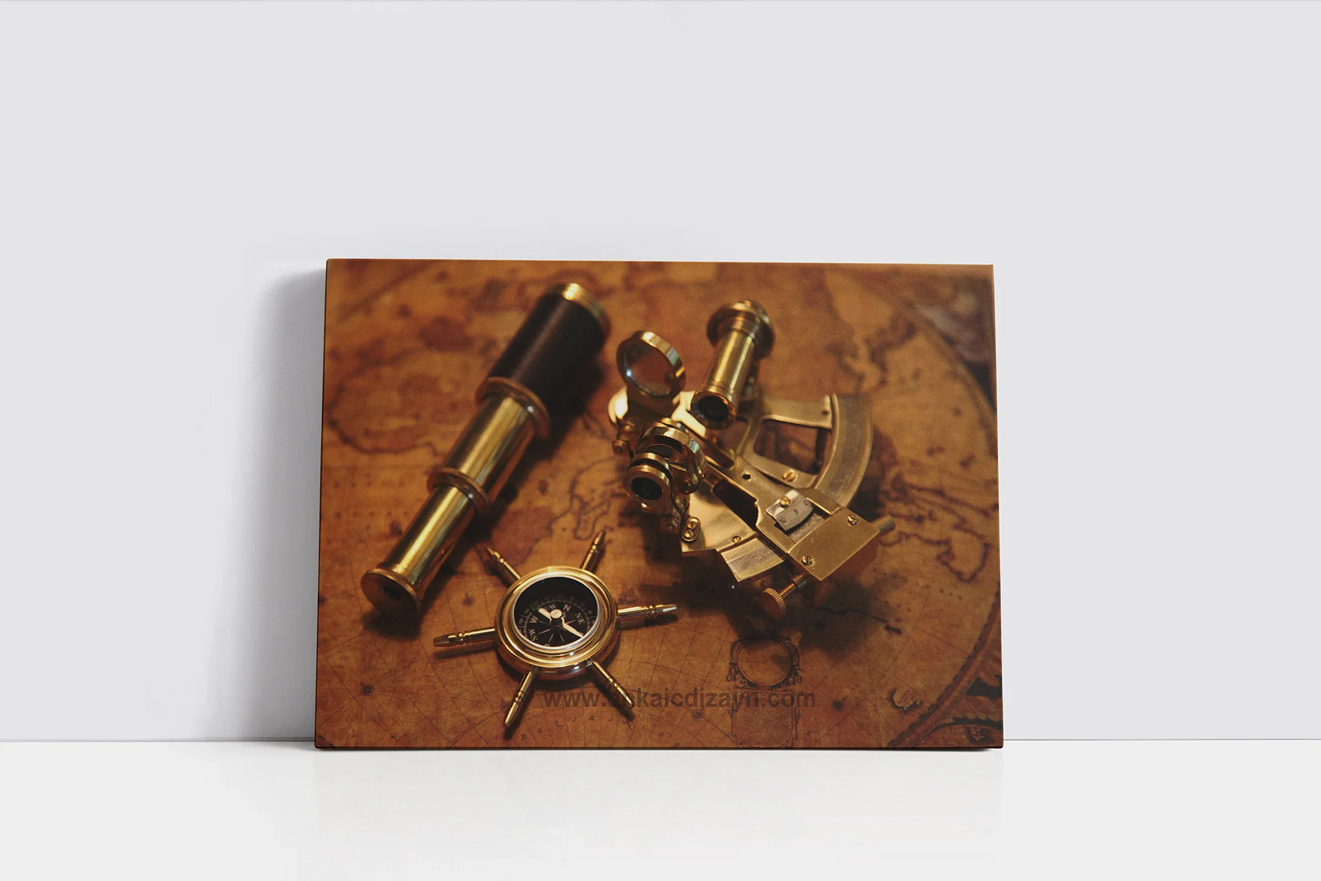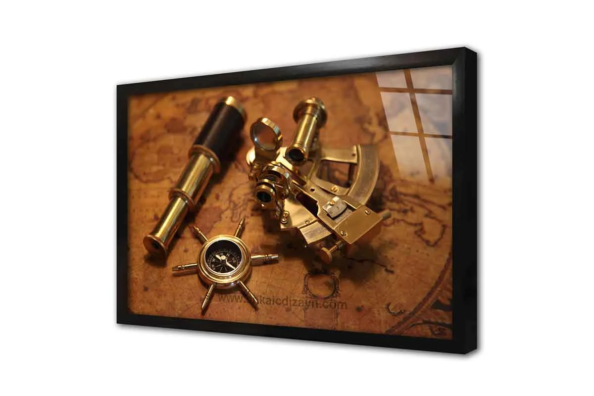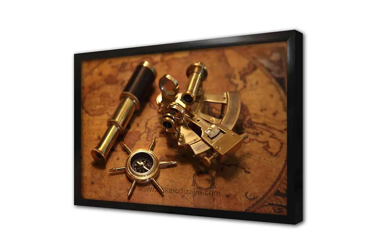 Sekstant Dürbün Ve Harita | Kanvas Tablo | Cam Tablo | Mdf Tablo | A12070