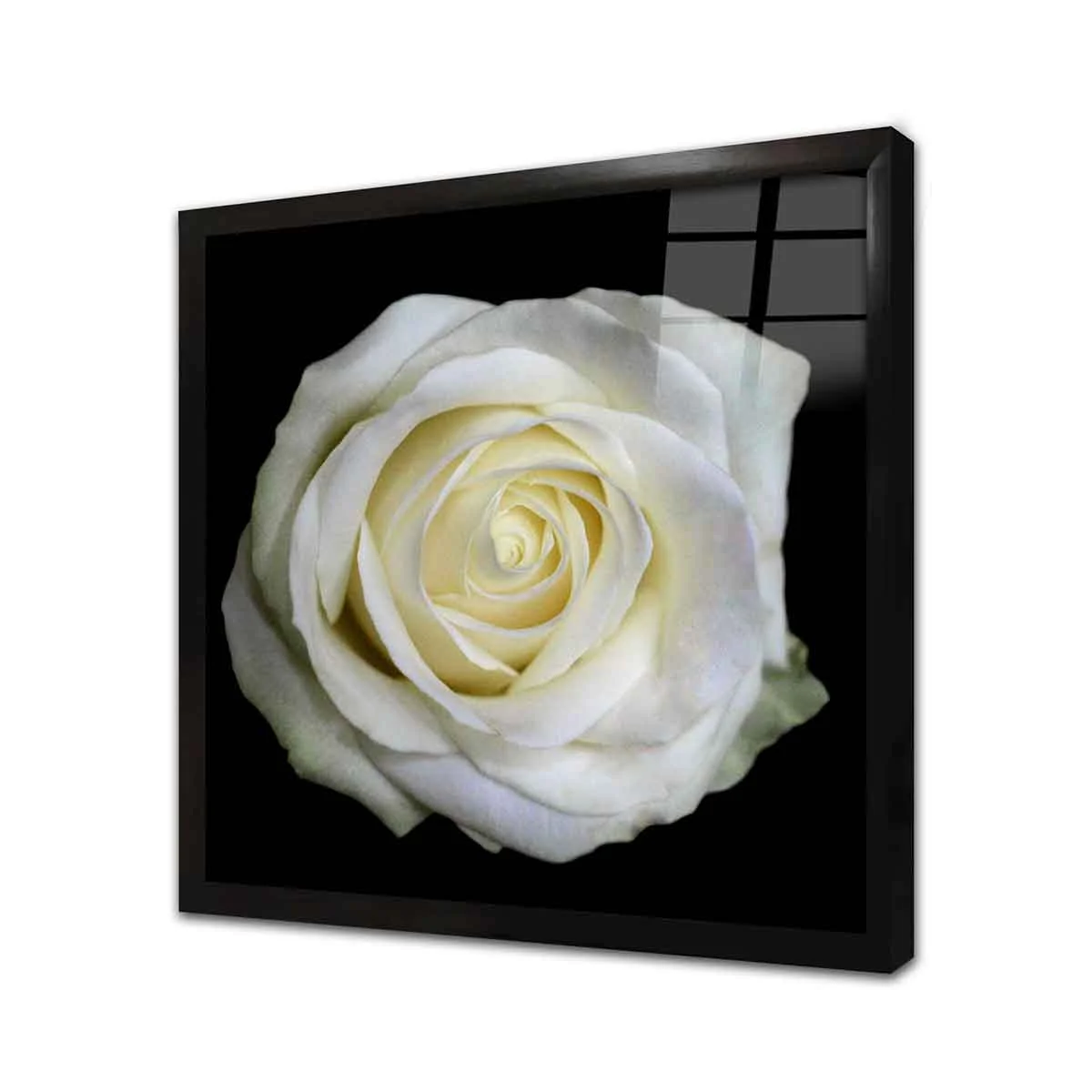 Siyah Fon Üzerinde Beyaz Gül | Kanvas Tablo | Cam Tablo | Mdf Tablo | A03203