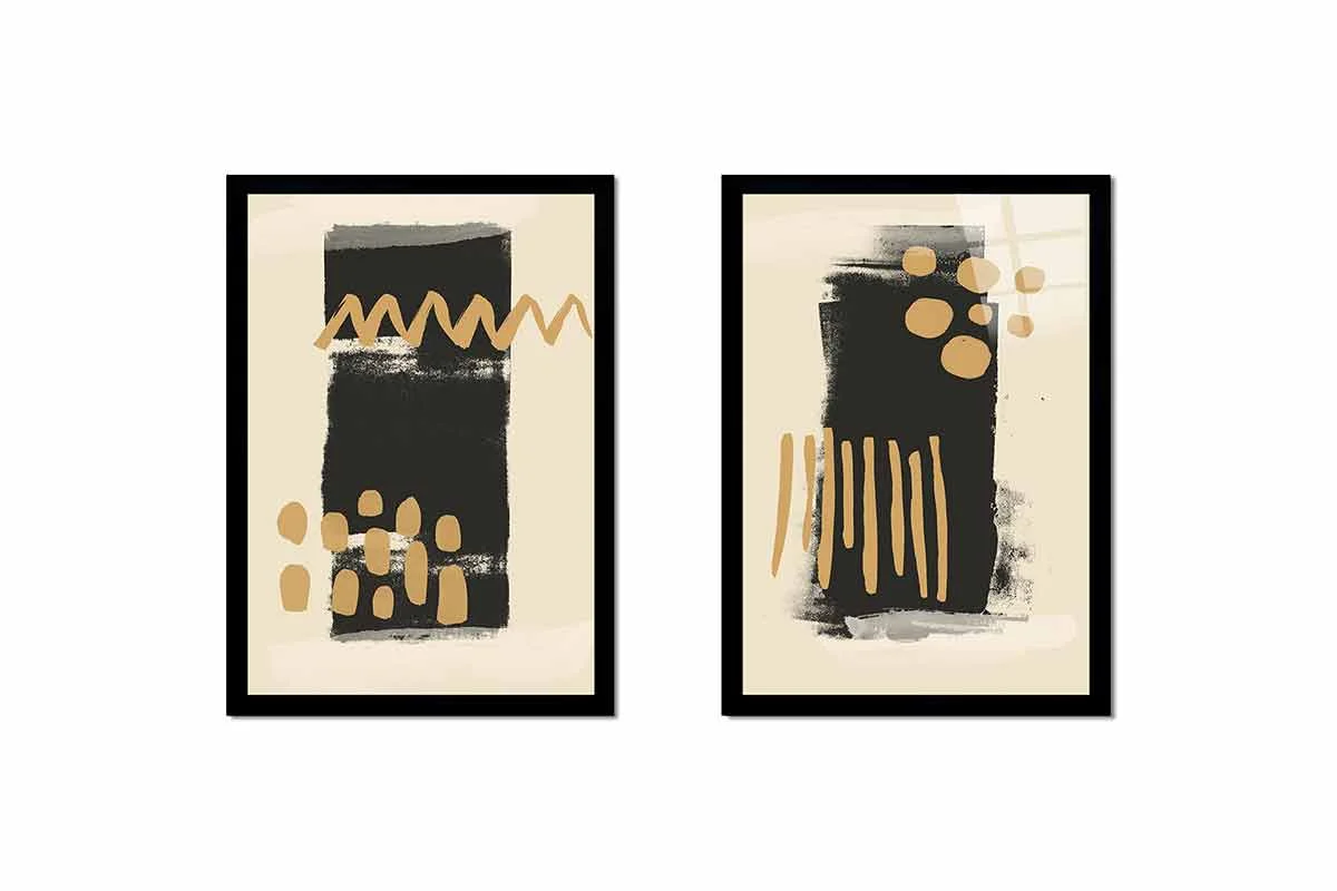 Siyah Ve Kahve Soyut İkili Kanvas Tablo | Cam Tablo | Mdf Tablo Seti | B33268