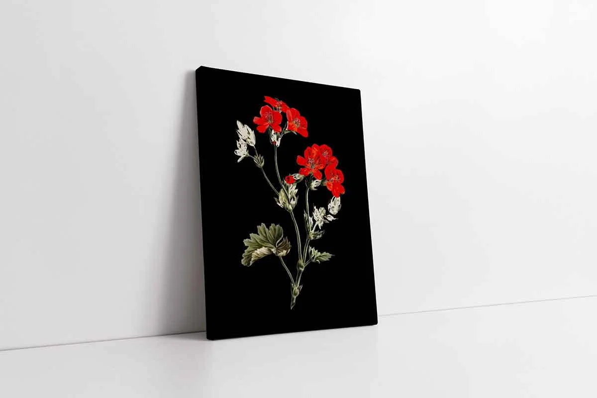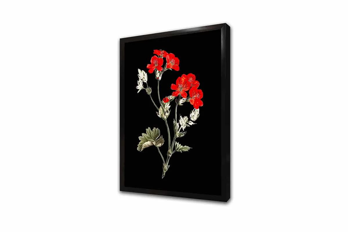 Siyah Zeminde Kırmızı Çiçek Iı | Kanvas Tablo | Cam Tablo | Mdf Tablo | B33103