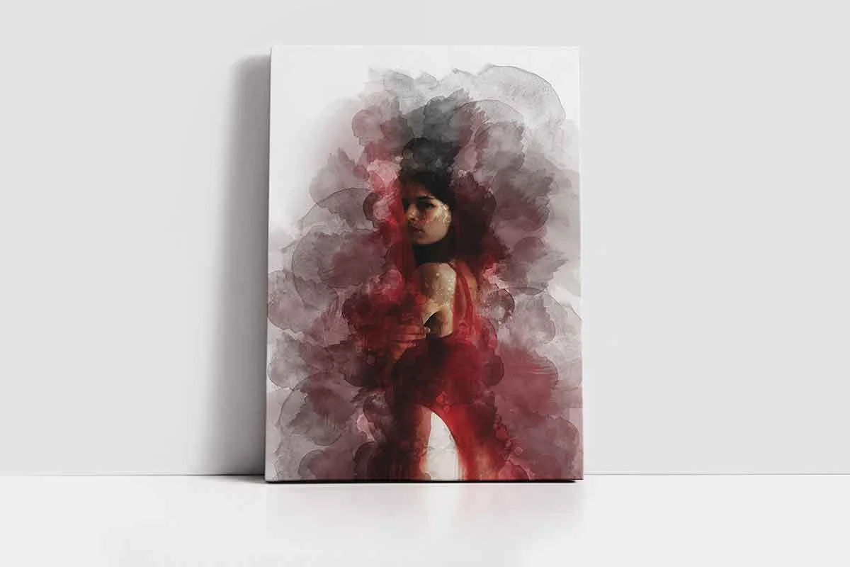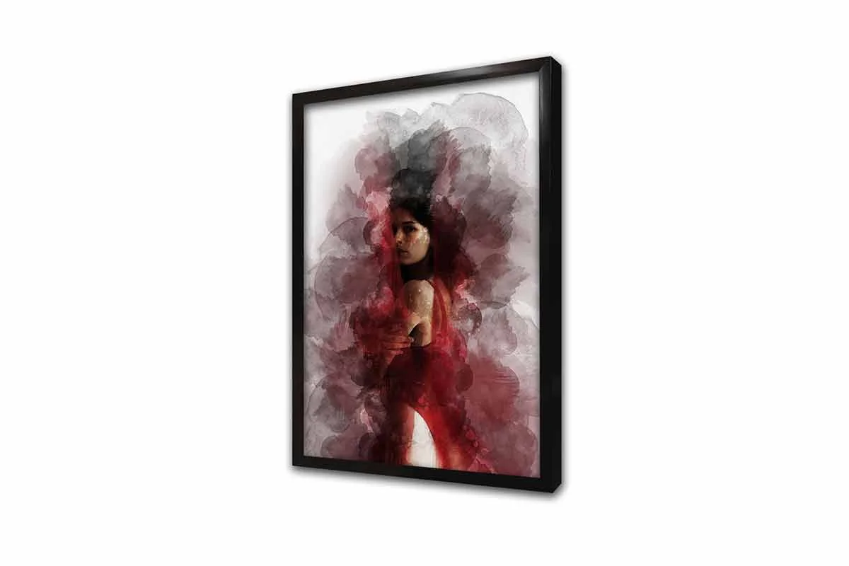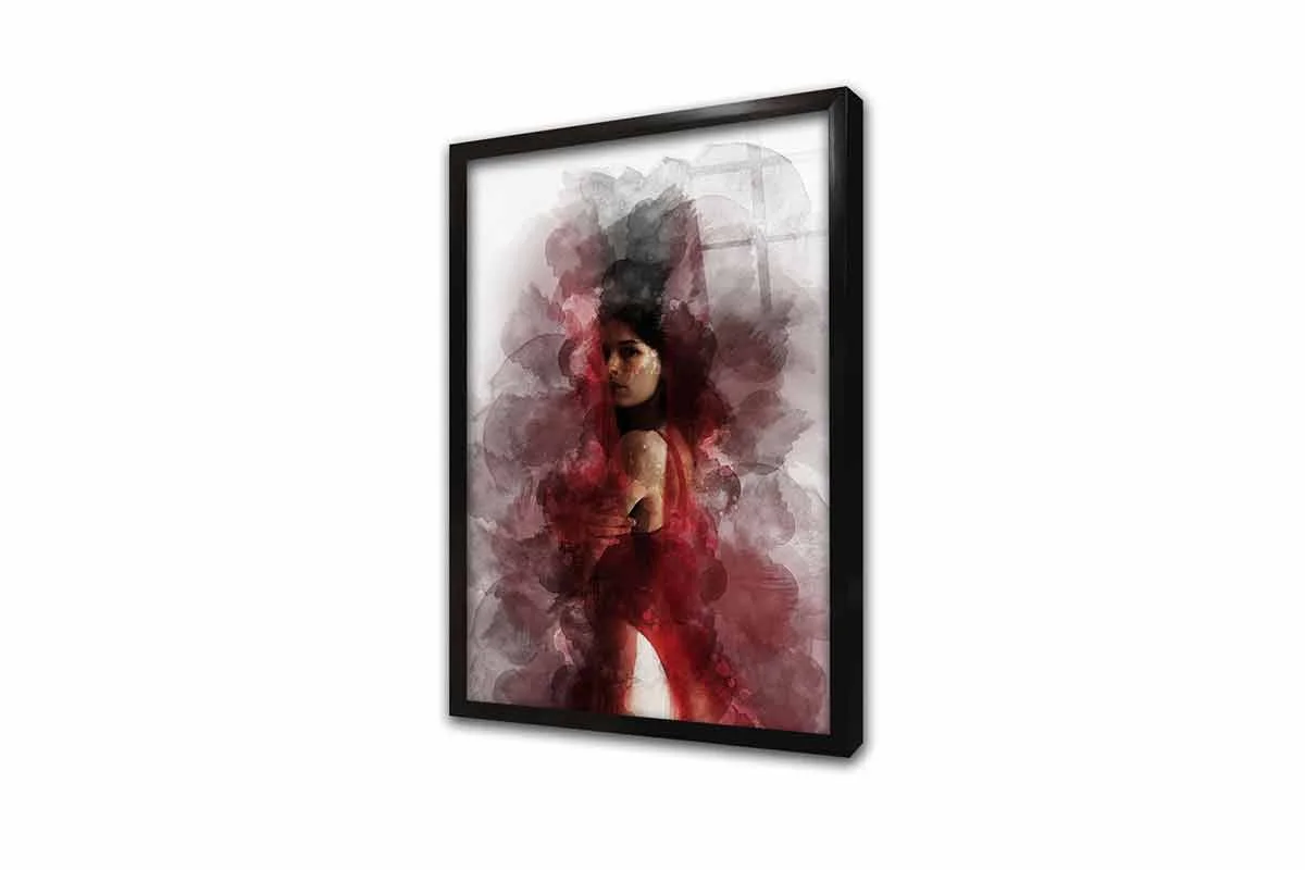 Sulu Boya Kırmızı Elbiseli Kadın | Kanvas Tablo | Cam Tablo | Mdf Tablo | B33202