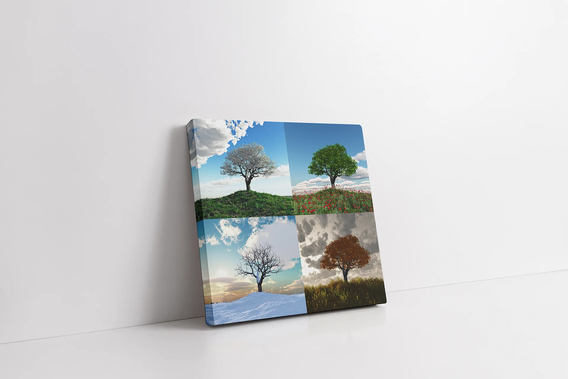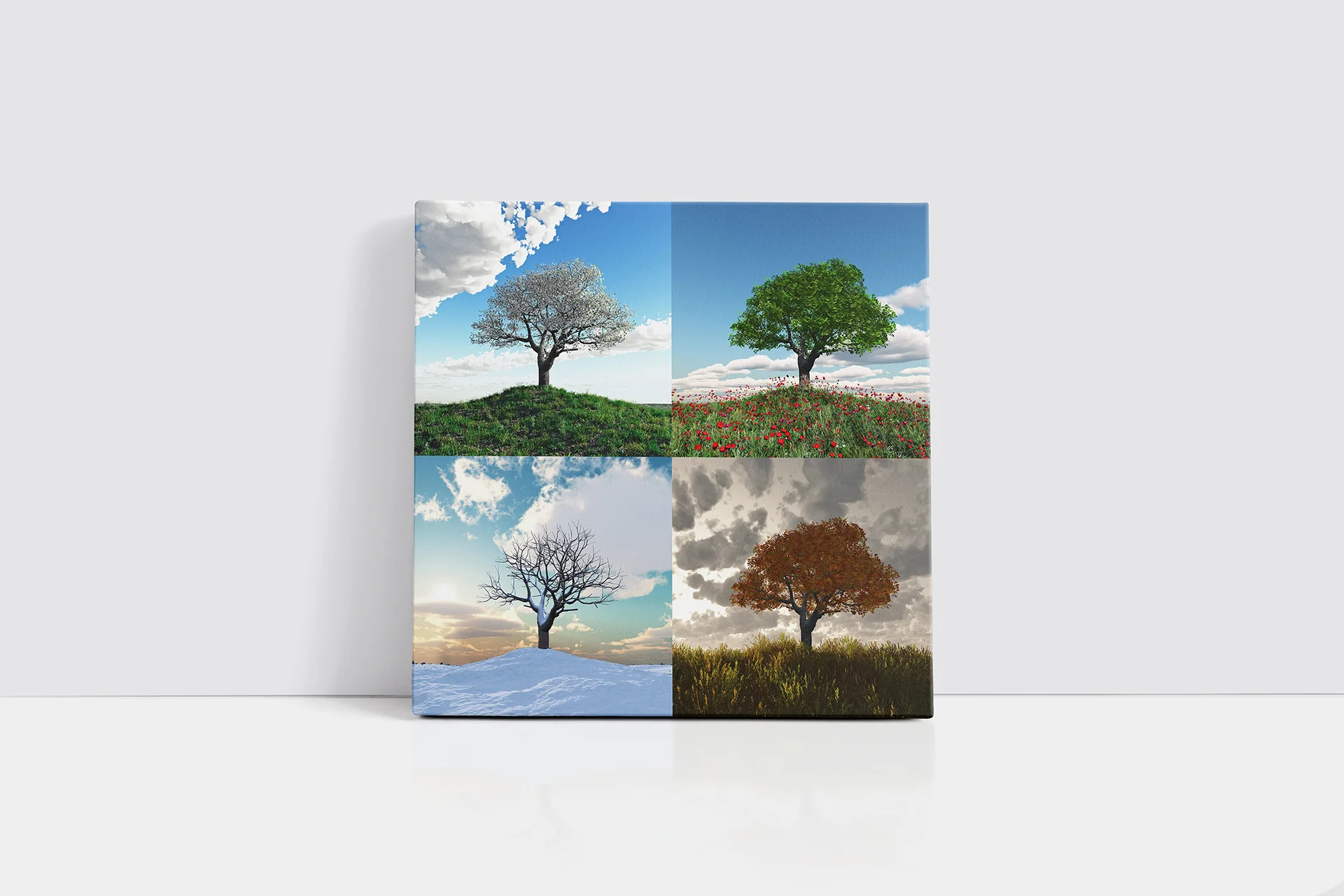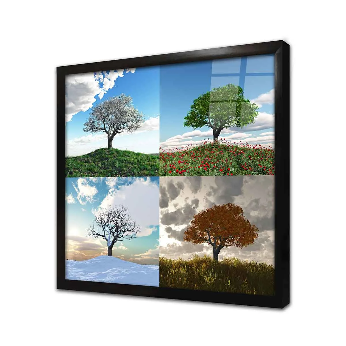 Tek Ağaç 4 Mevsim Kolaj | Kanvas Tablo | Cam Tablo | Mdf Tablo | A20559