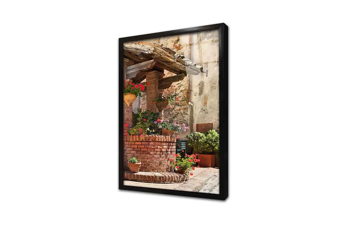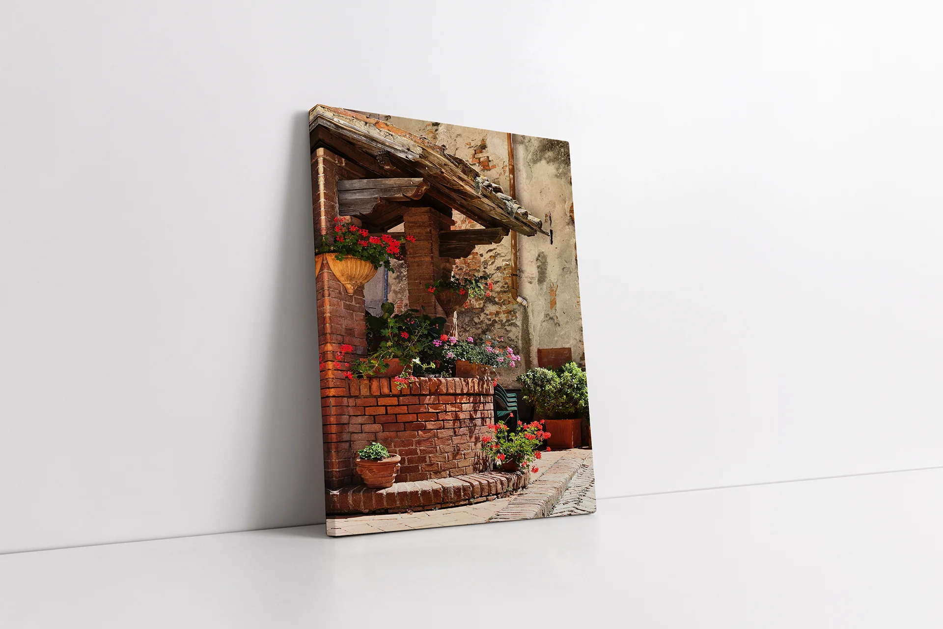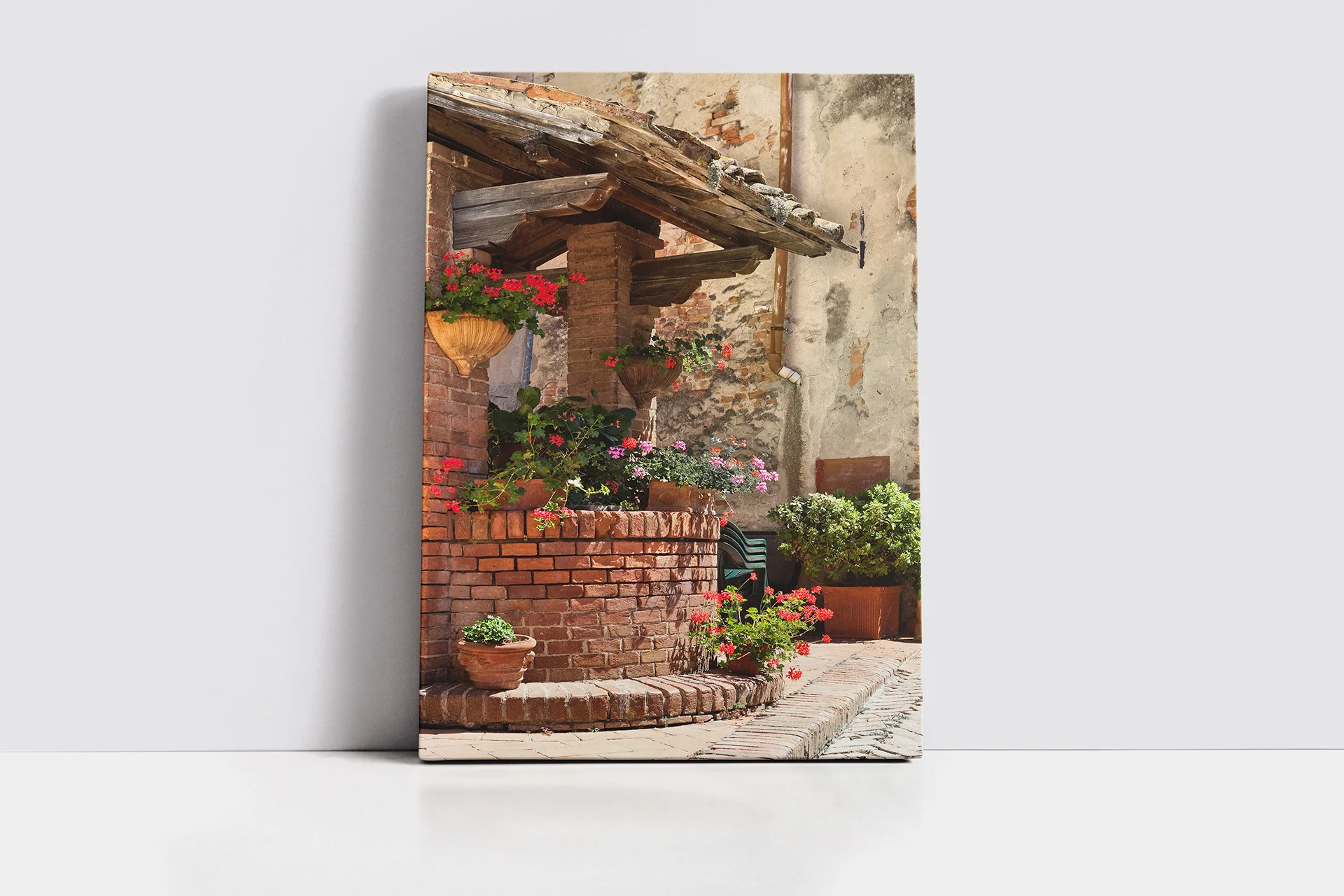 Tuğla Kuyu Başında Çiçekler | Kanvas Tablo | Cam Tablo | Mdf Tablo | A07244