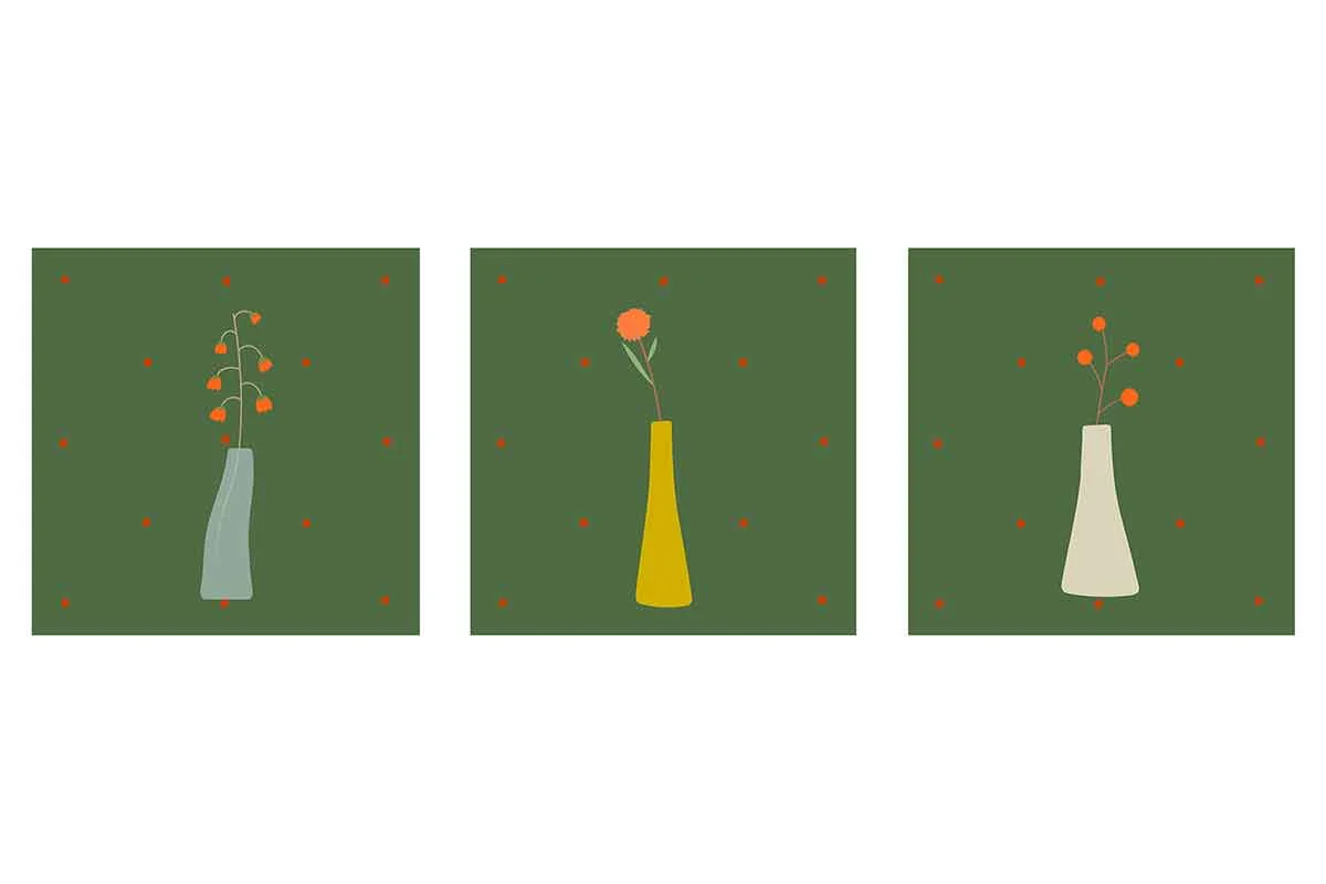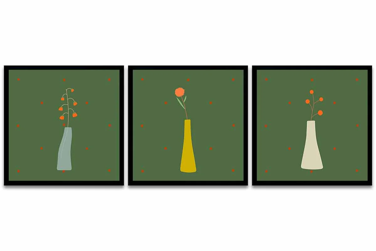 Vazoda Çiçekler Üçlü Kanvas Tablo | Cam Tablo | Mdf Tablo Seti | B33168