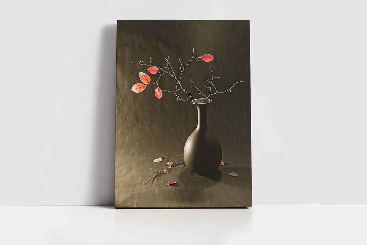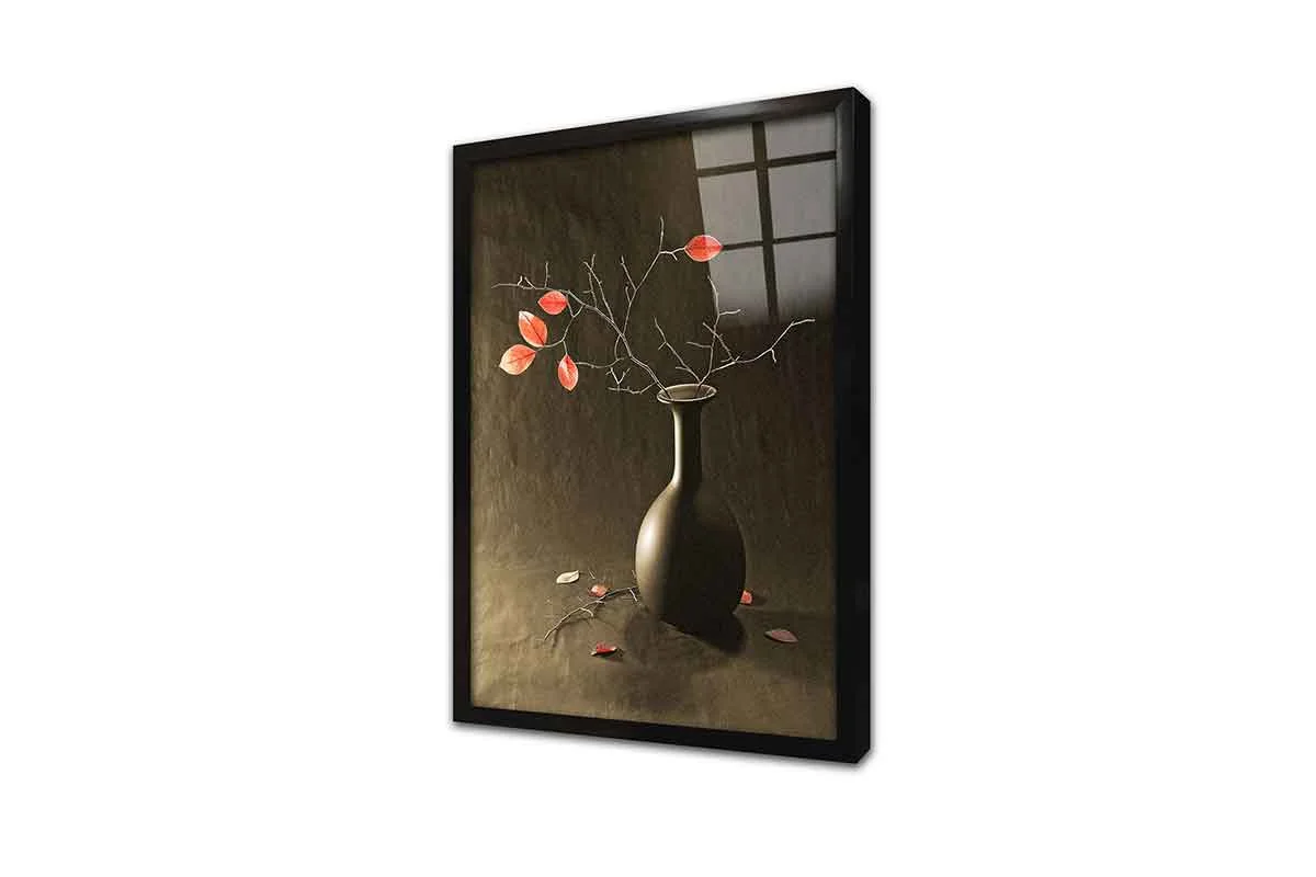 Vazoda Kırmızı Yapraklar | Kanvas Tablo | Cam Tablo | Mdf Tablo | A03204