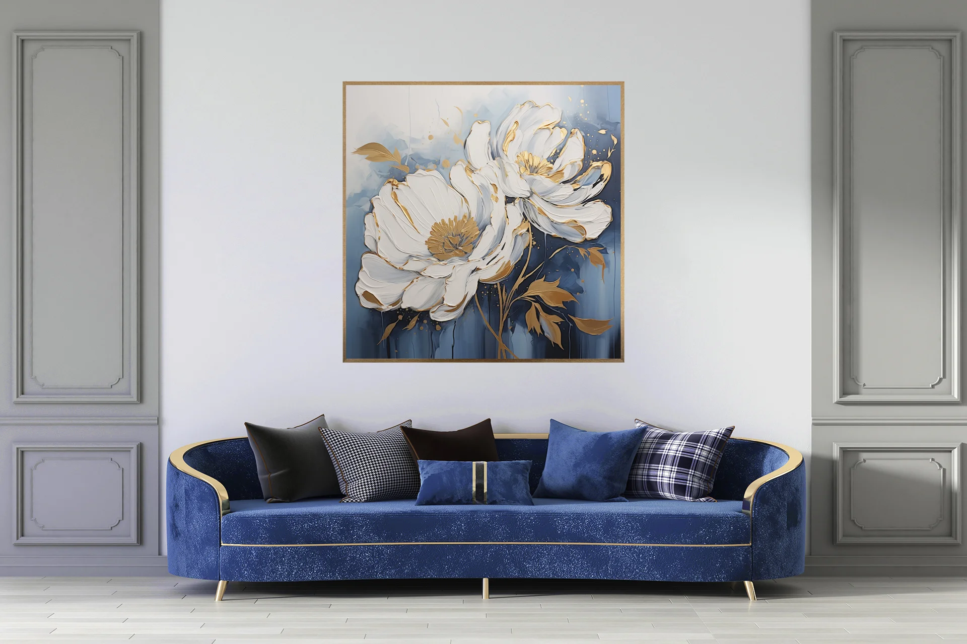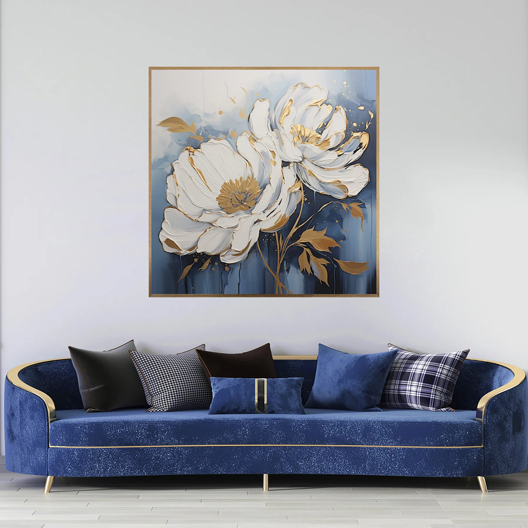 Etiketler: Altın, Beyaz, Çerçeveli, Çiçekler, Kare, Modern, Yağlı Boya Dokulu Tablo
