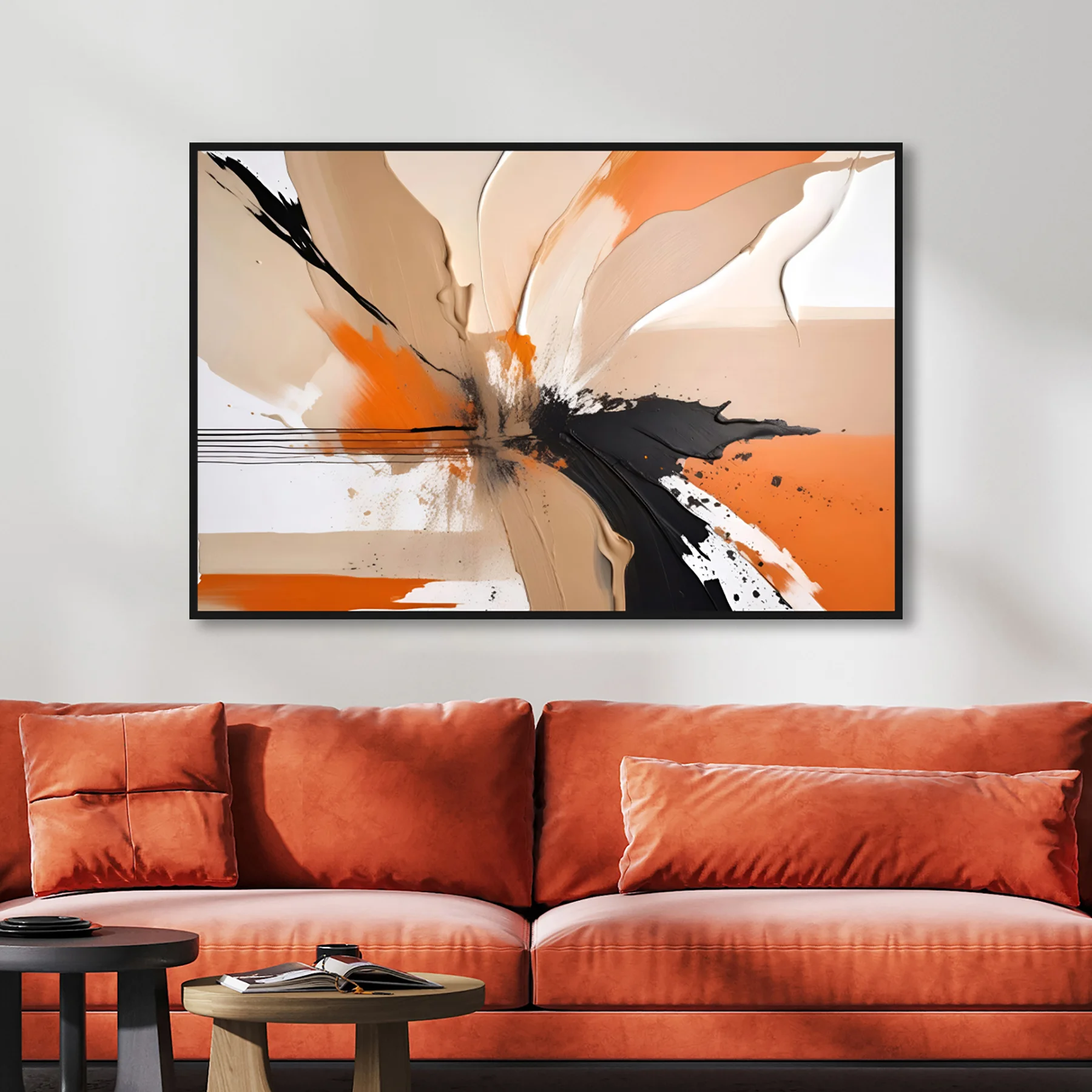 Yağlı Boya Dokulu Tablo Kahve Bej Siyah Soyut Siyah Çerçeveli