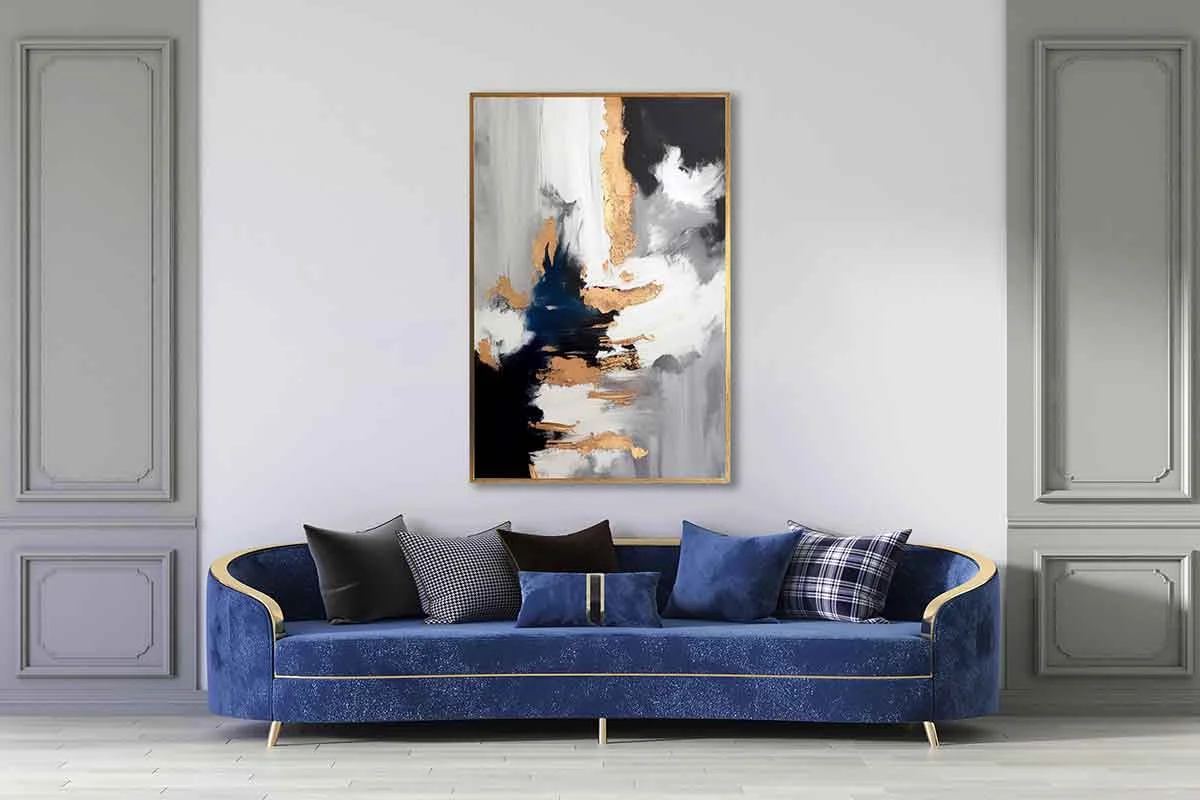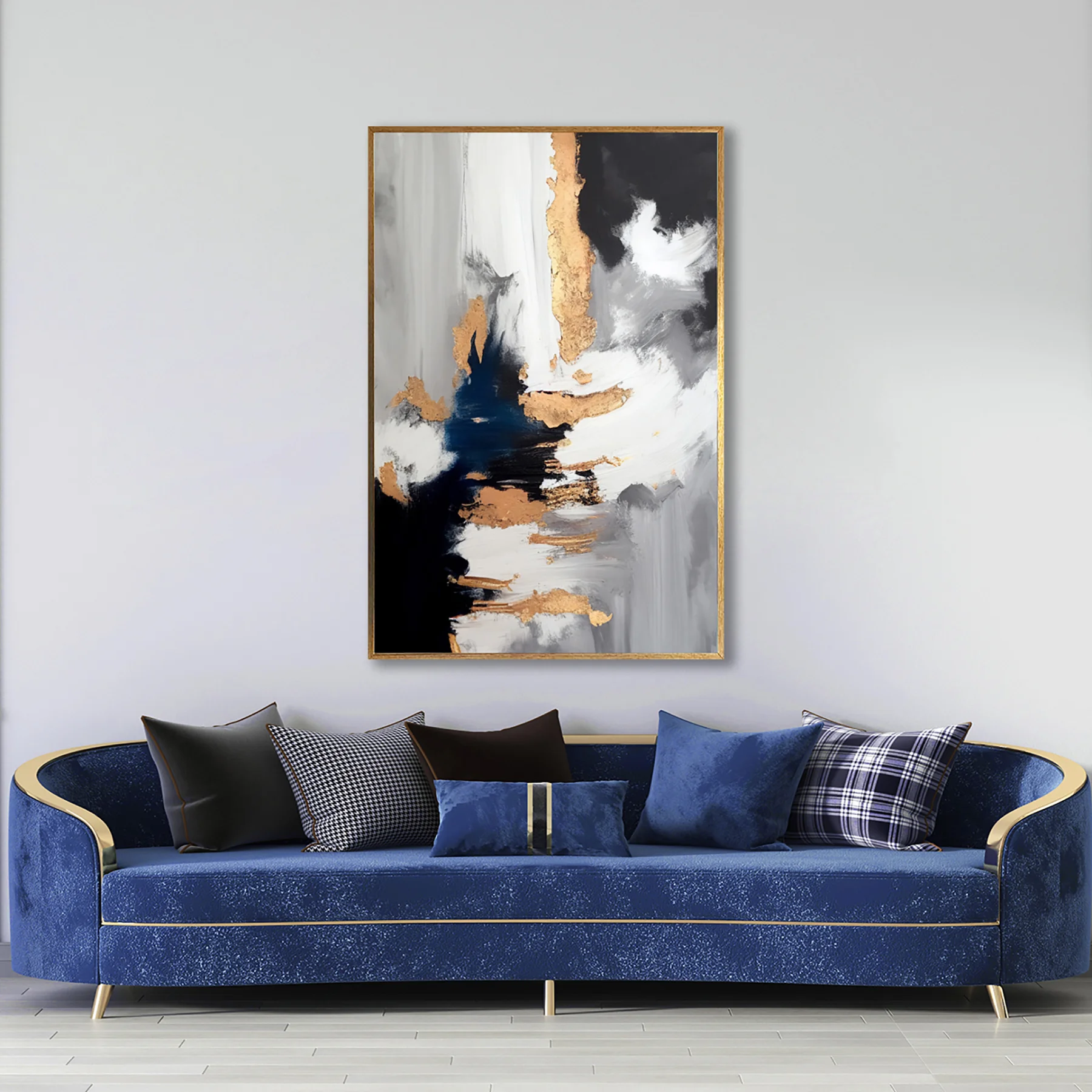 Yağlı Boya Dokulu Tablo Kahve Siyah Beyaz Soyut Altın Çerçeveli