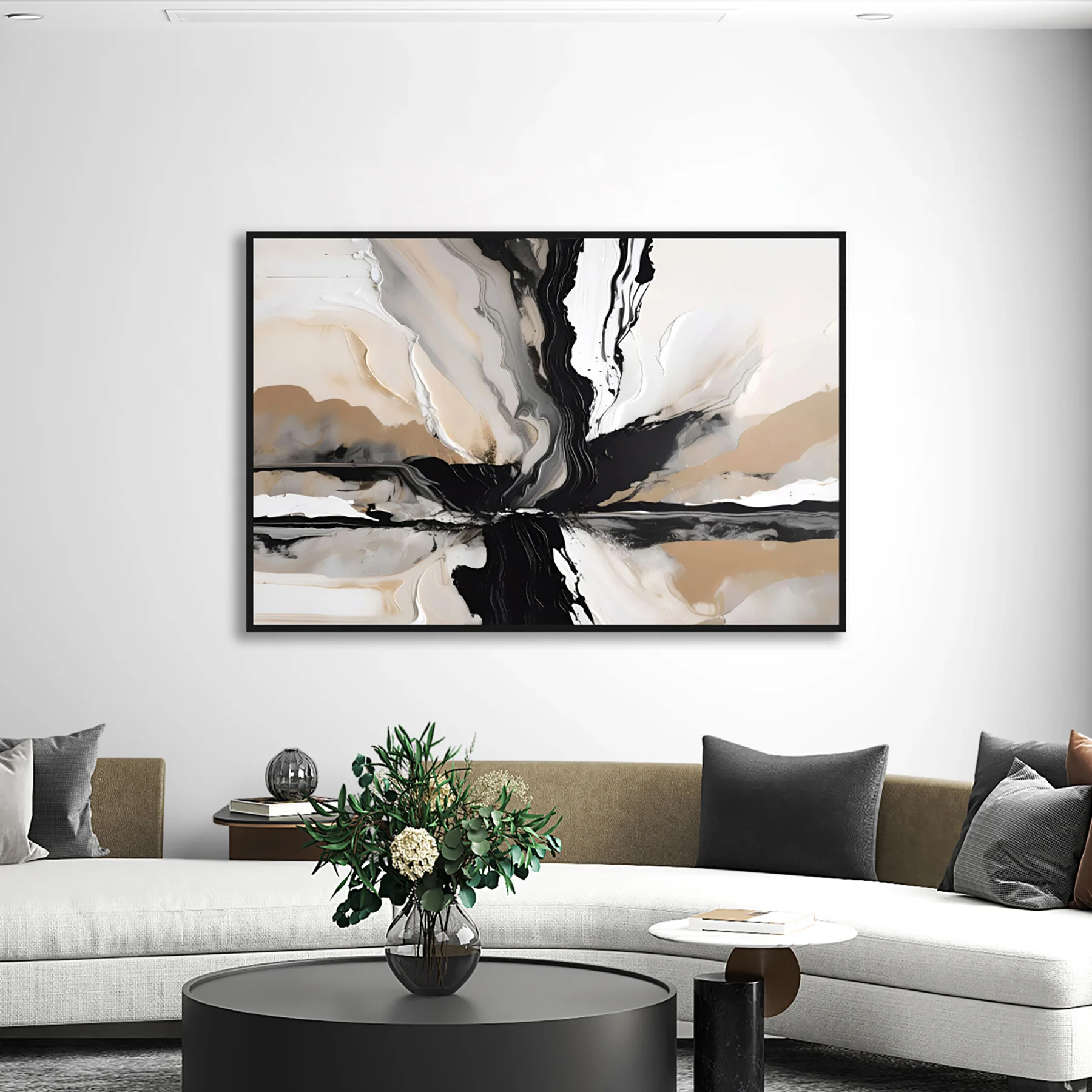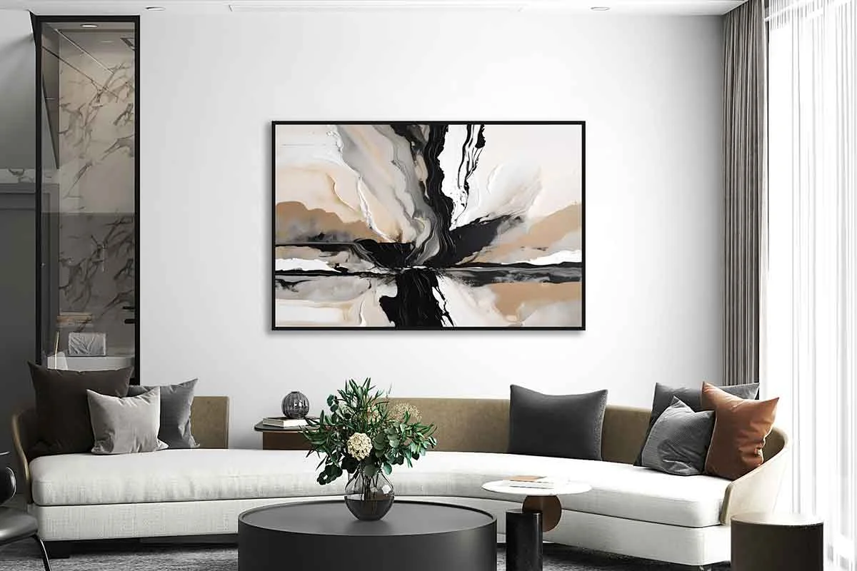 Yağlı Boya Dokulu Tablo Siyah Bej Gri Soyut Siyah Çerçeveli