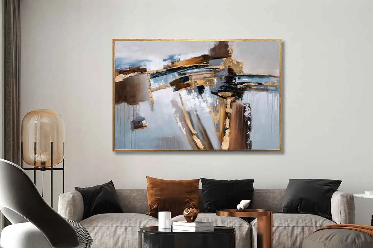 Yağlı Boya Dokulu Tablo Kahverengi Gold Soyut Altın Çerçeveli