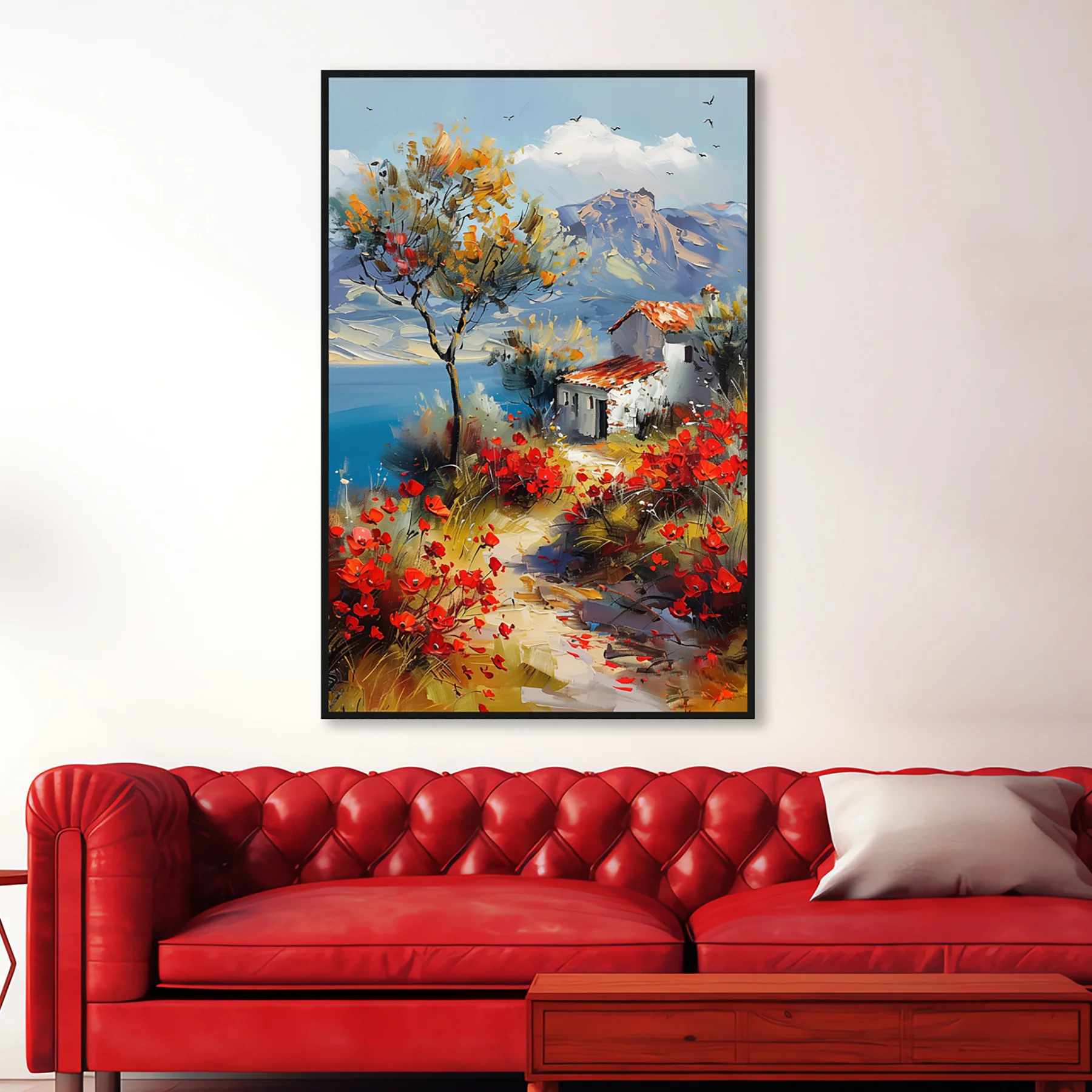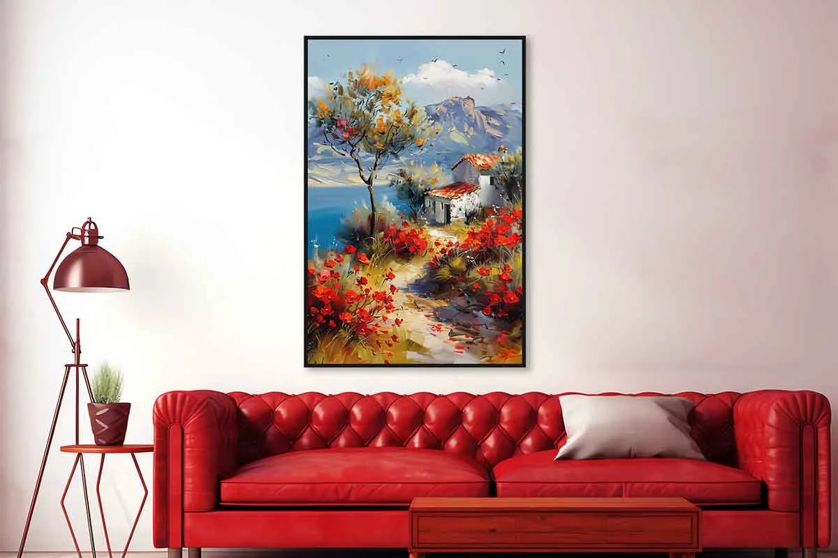 Etiketler: Dikey, Evi, Gelincikler, Kırmızı, Köy, Manzara, Siyah, ve, Yağlı Boya Dokulu Tablo