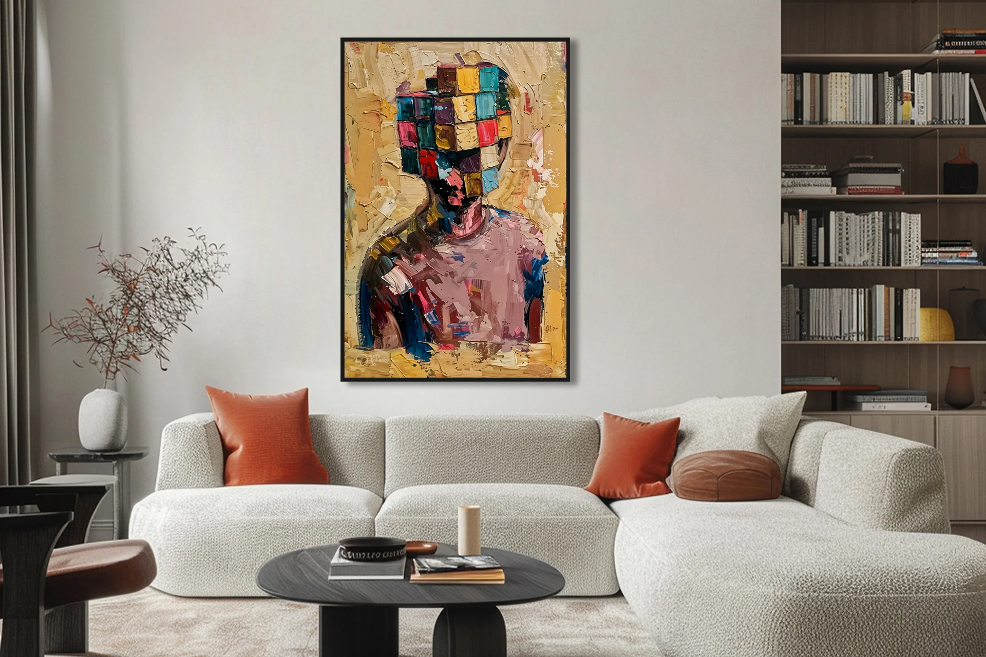 Etiketler: Çerçeveli, Dikey, Küpler, Modern, Portre, Siyah, Yağlı Boya Dokulu Tablo