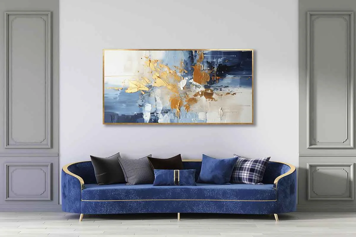 Yağlı Boya Dokulu Tablo Lacivert Altın Gold Soyut Altın Çerçeveli