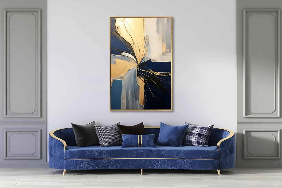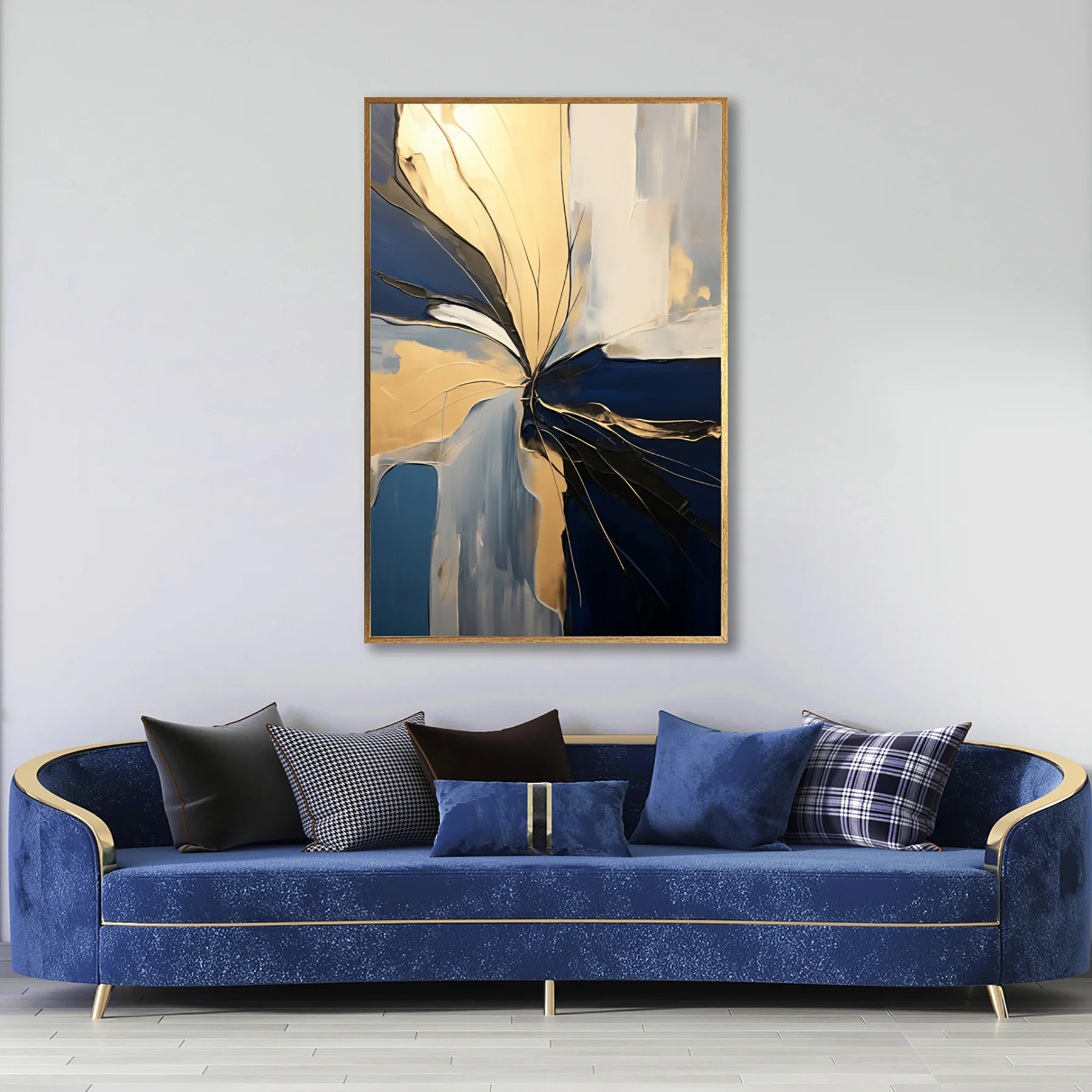 Yağlı Boya Dokulu Tablo Lacivert Bej Altın Soyut Altın Çerçeveli