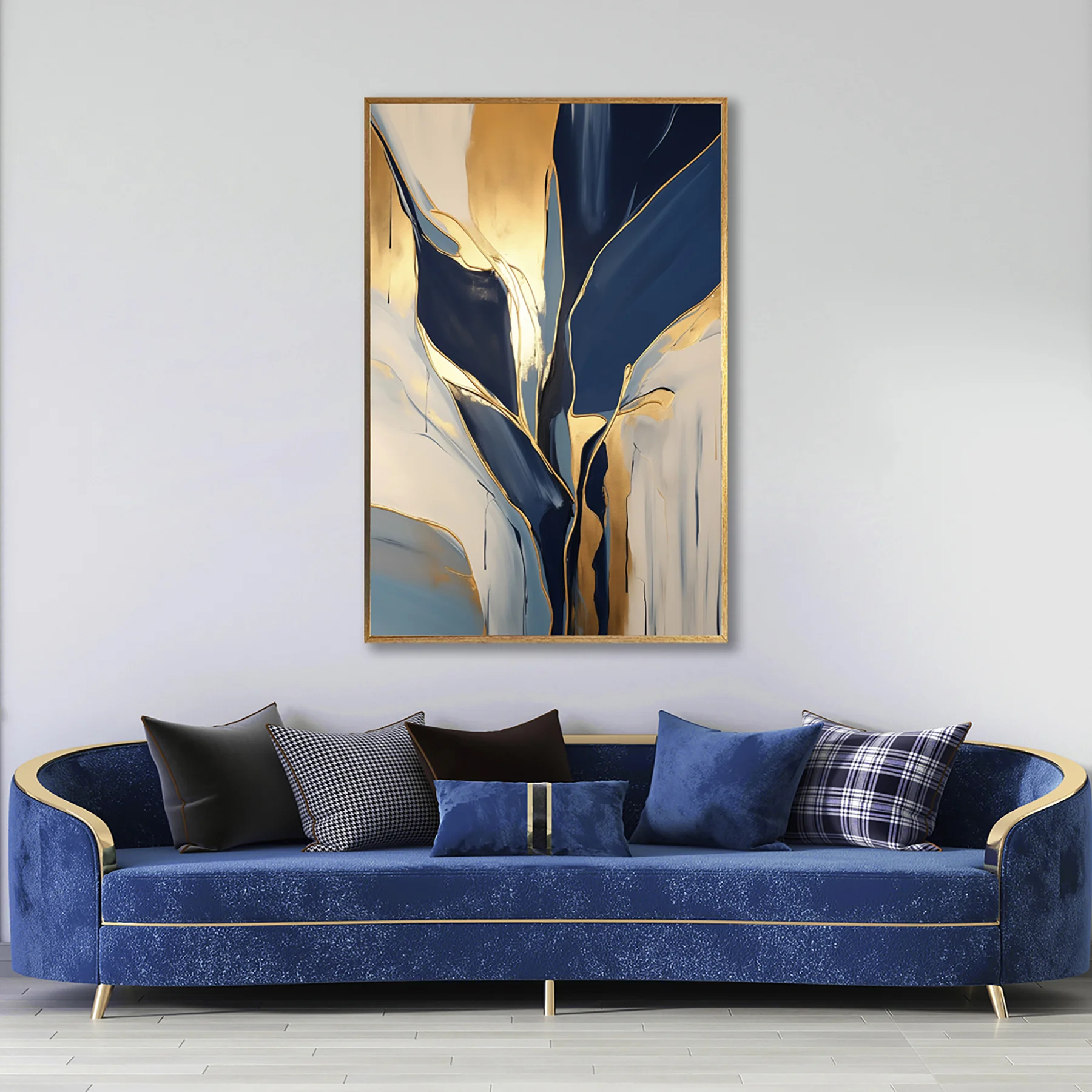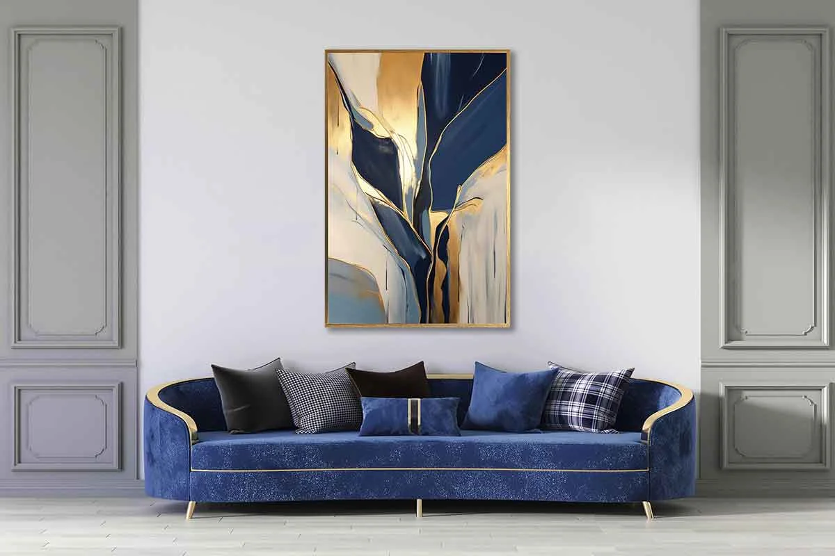 Yağlı Boya Dokulu Tablo Lacivert Bej Altın Soyut Altın Çerçeveli