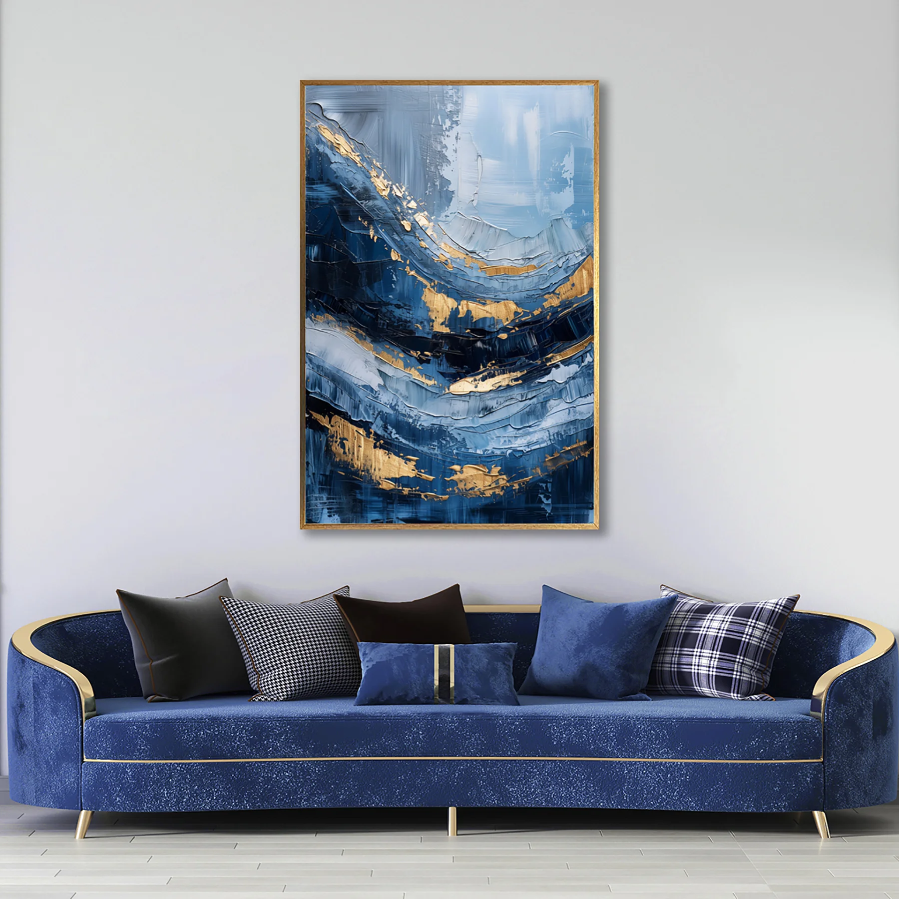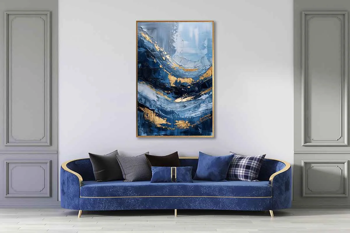Yağlı Boya Dokulu Tablo Mavi Altın Gold Soyut Altın Çerçeveli