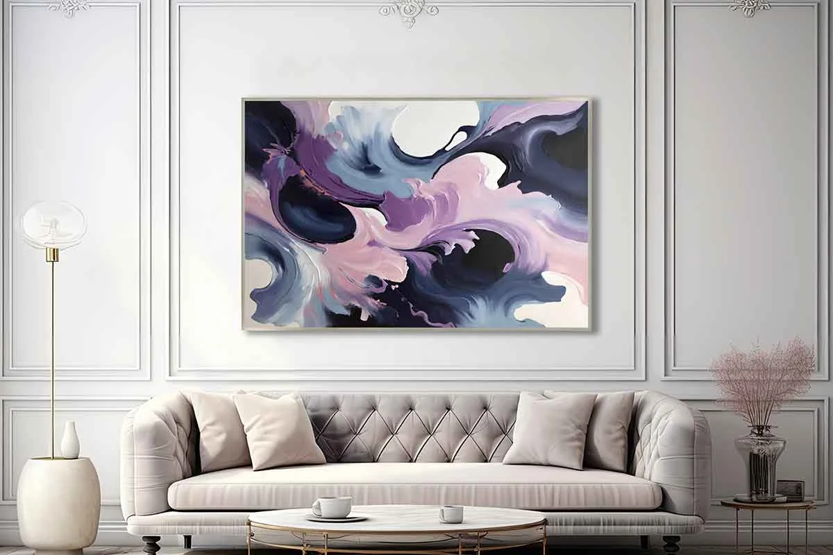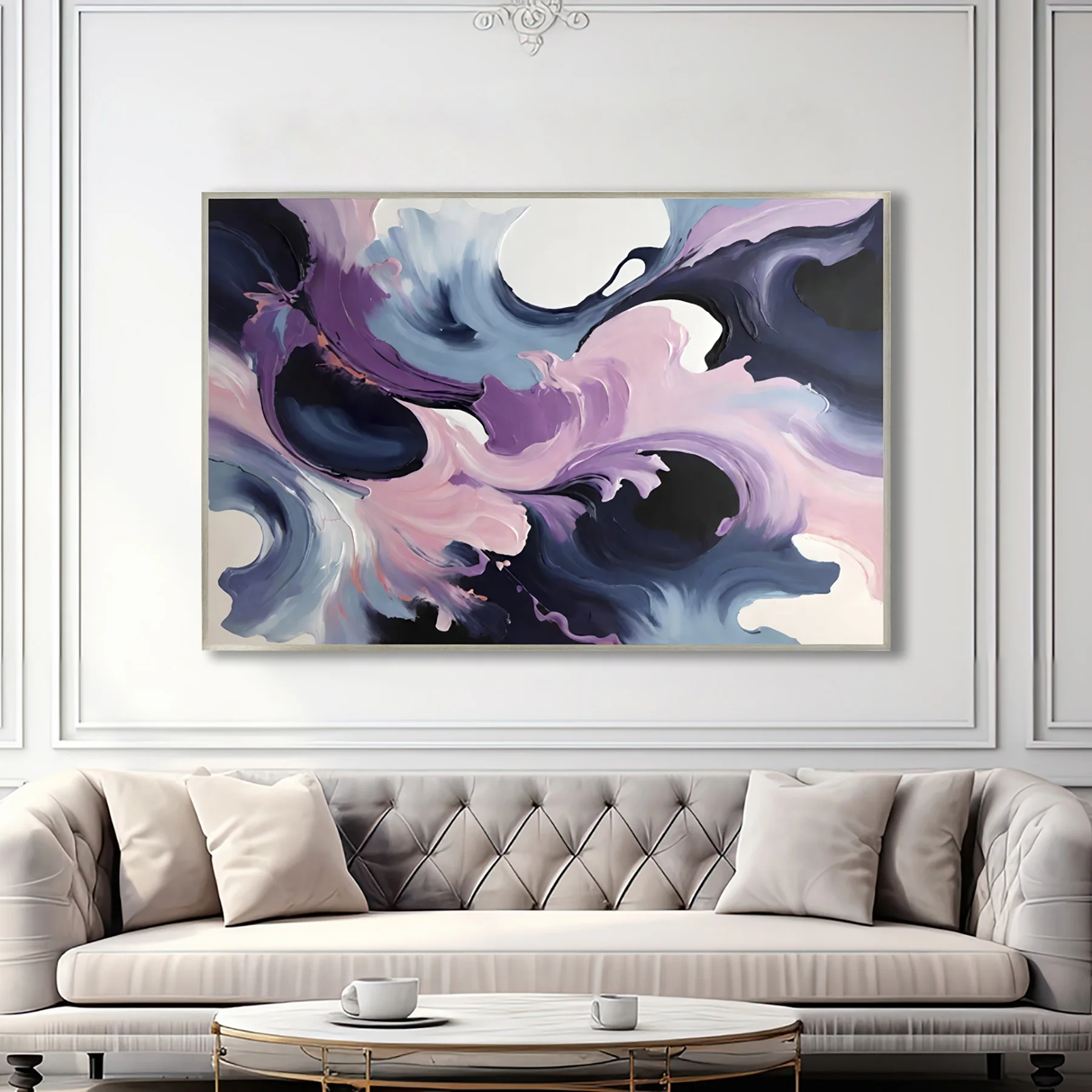 Yağlı Boya Dokulu Tablo Mor Lila Siyah Soyut Gümüş Çerçeveli