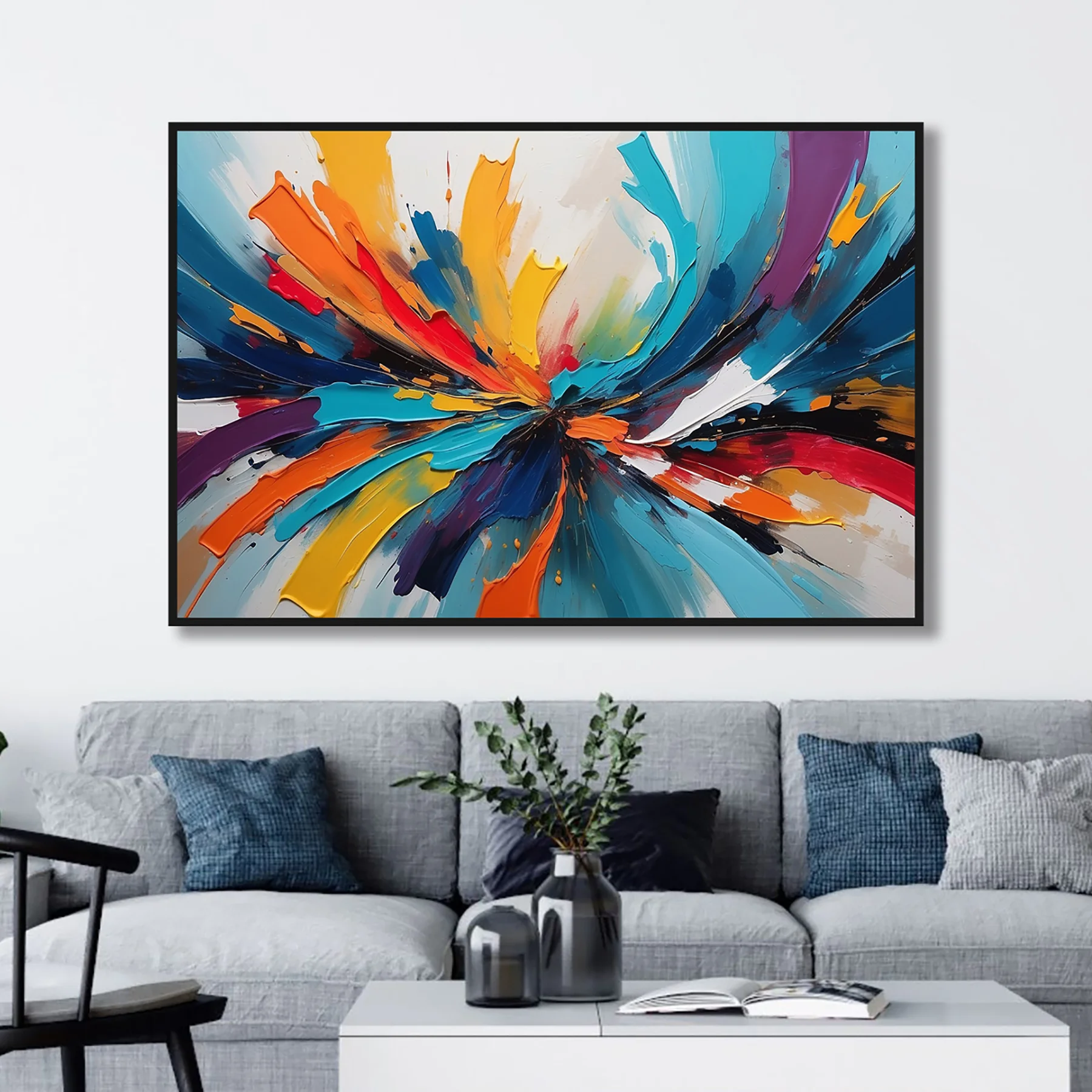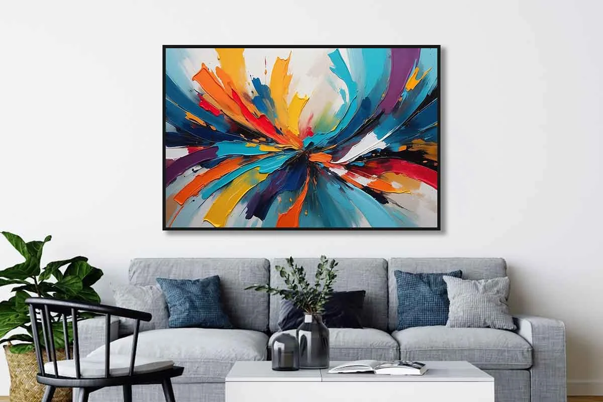 Yağlı Boya Dokulu Tablo Renkli Boyalar Soyut Siyah Çerçeveli