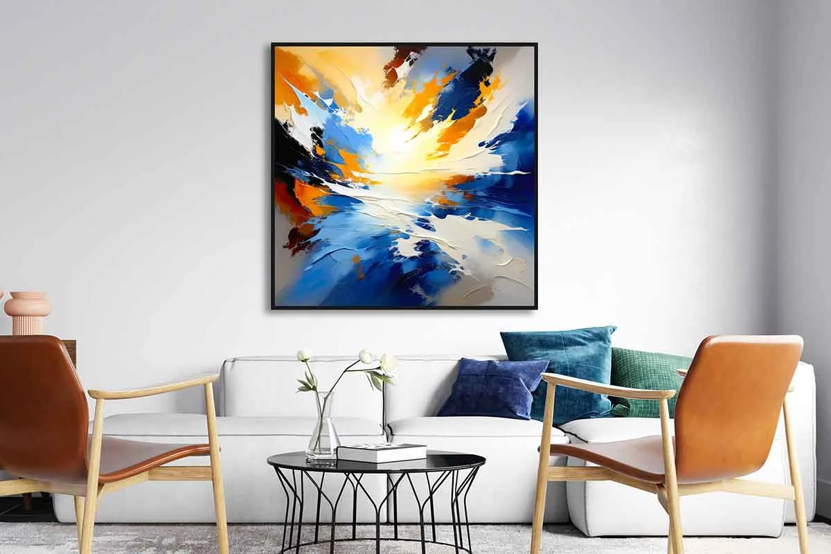 Yağlı Boya Dokulu Tablo Renkli Soyut Manzara Siyah Çerçeveli