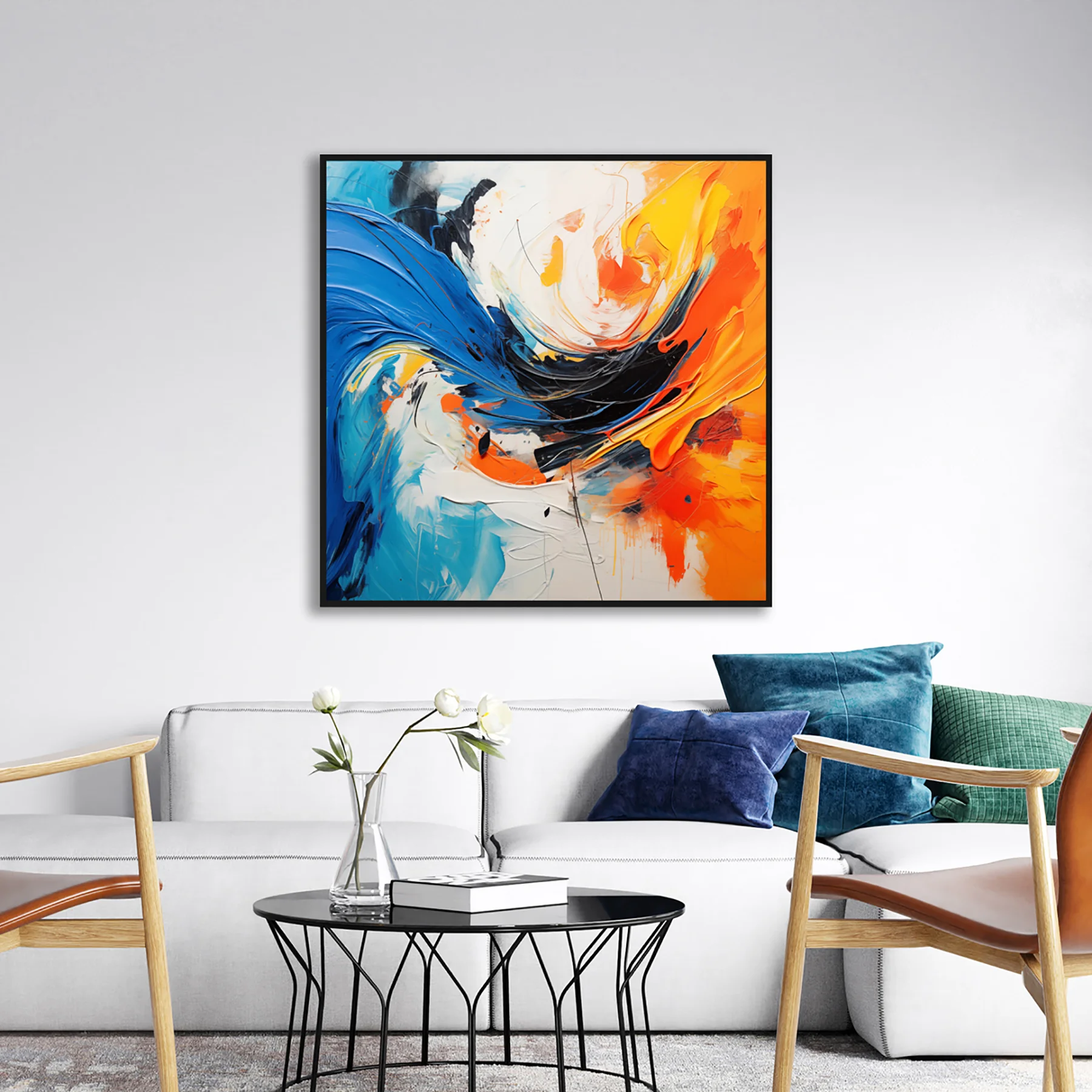 Yağlı Boya Dokulu Tablo Renkli Soyut Siyah Çerçeveli