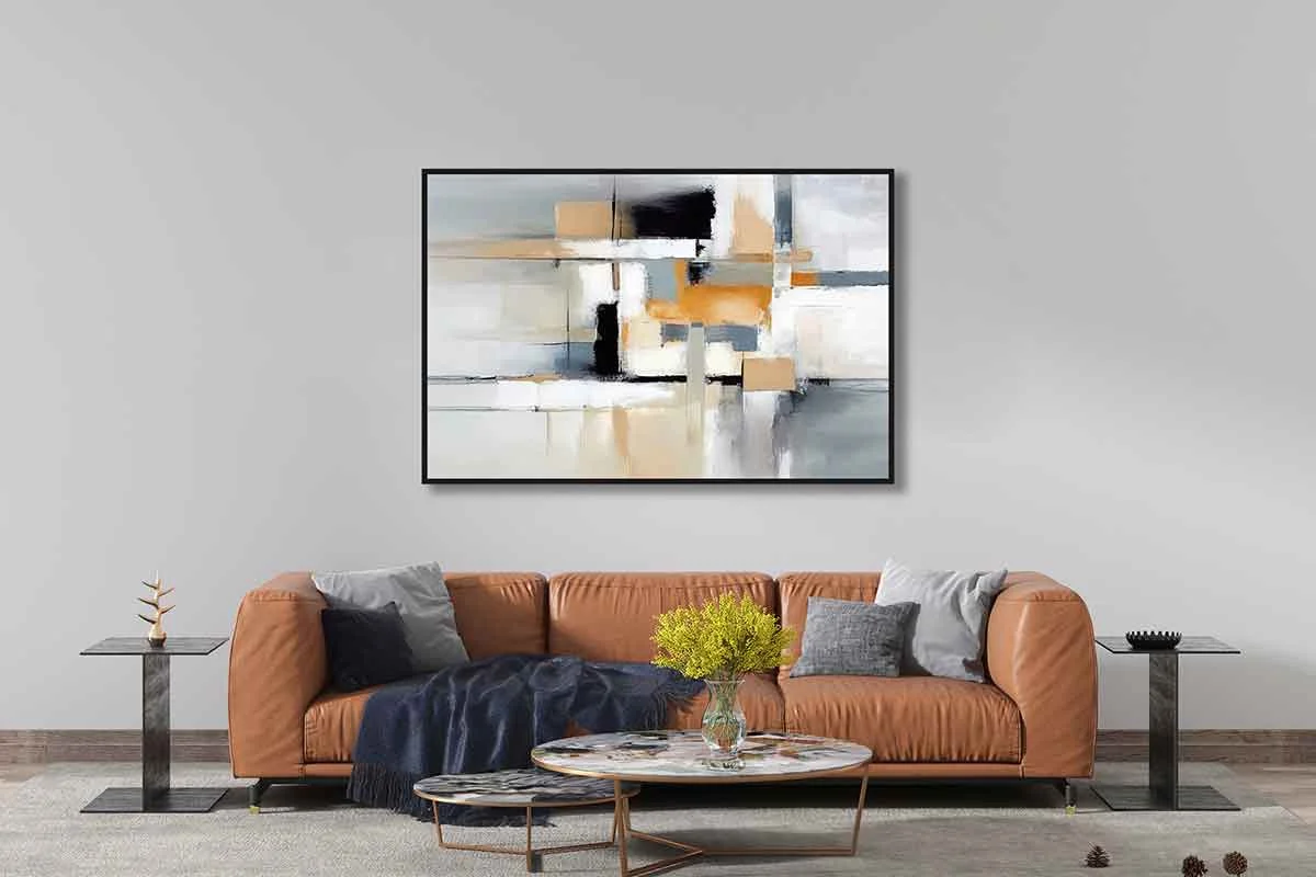 Etiketler: Bej, Gri, Siyah, Soyut, Yağlı Boya Dokulu Tablo, Yatay