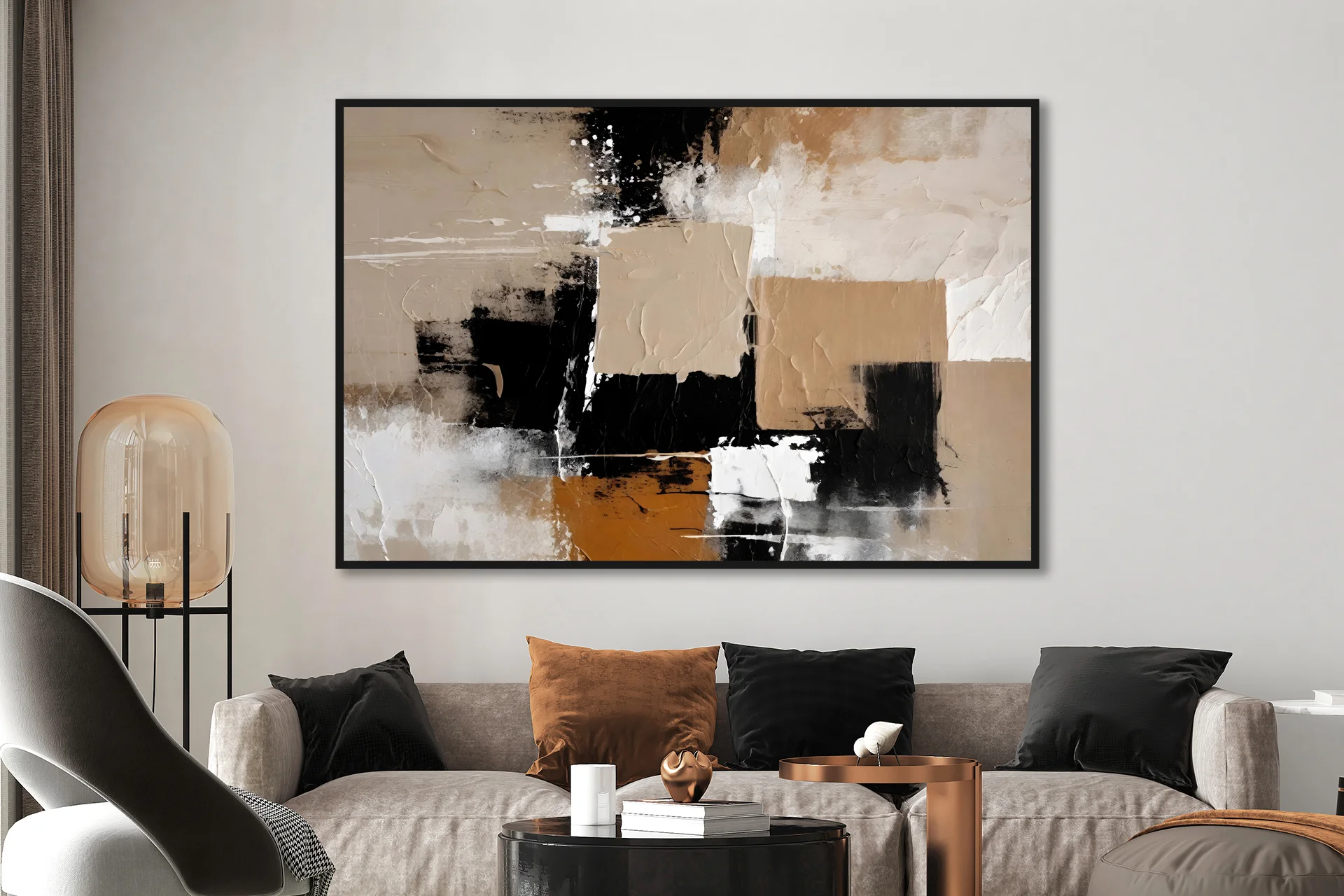 Yağlı Boya Dokulu Tablo Siyah Kahve Soyut Siyah Çerçeveli